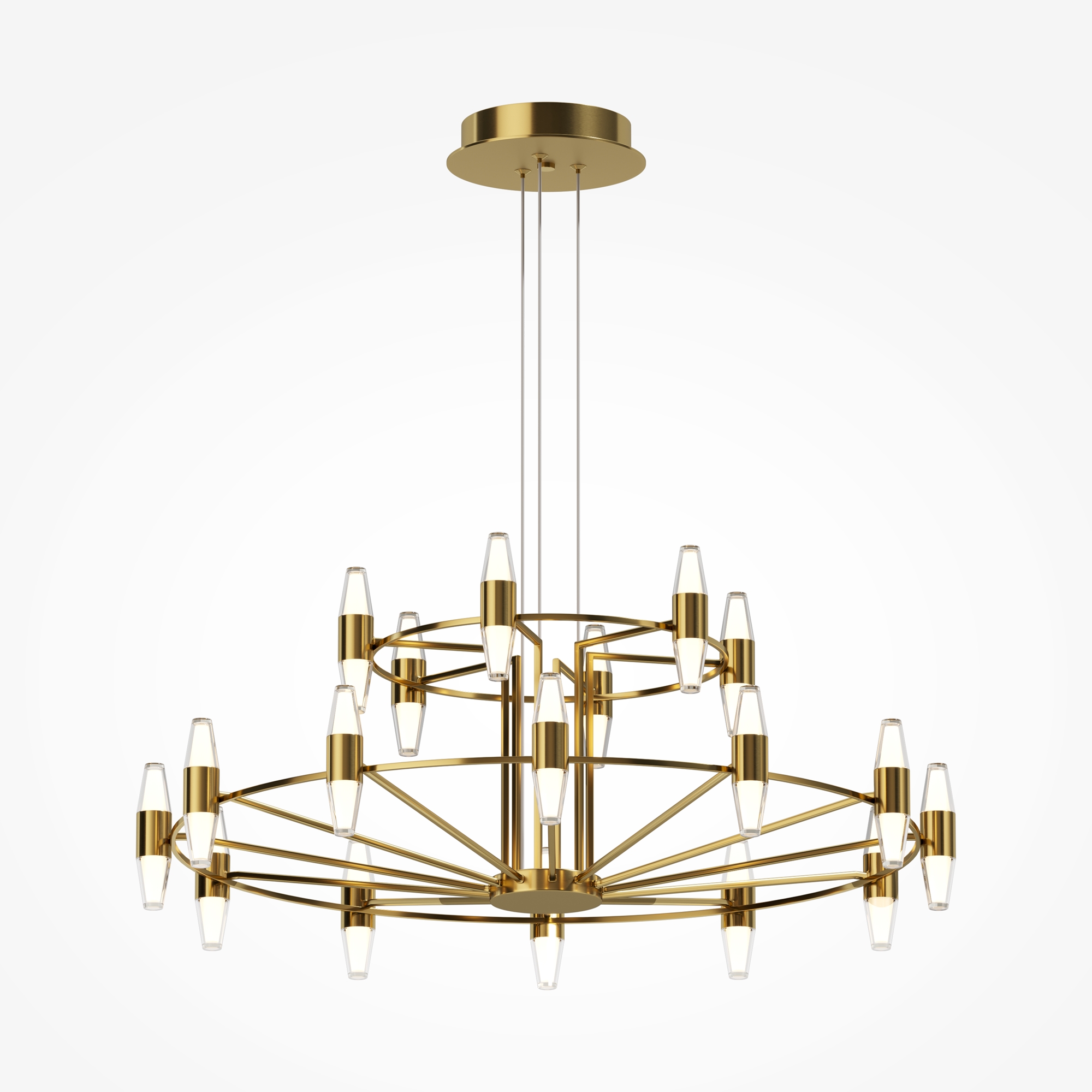 Цвет арматуры — латунь. Двойной плафон, выполненный из двух типов высококачественного акрила — матовый и прозрачный. Объемное освещение с равномерным распределением света во всех направлениях. LED-источник света. Комфортный для глаз свет при значительном световом потоке. Регулируемая высота подвесных моделей.