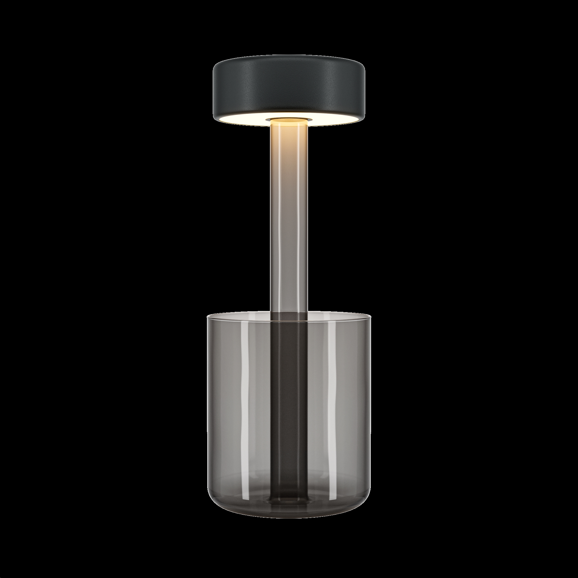 Портативный настольный светильник. Результат творческой коллаборации искусственного интелекта и предметного дизайнера. Два варанта корпуса светильника: с металлической тонкой ножкой на плоском круглом основании; со стеклянным основанием с интегрированным в него вазой. Плафон снимается с основания для удобного ухода за стеклянными элементами и подзарядки аккумулятора, расположенного в плафоне. Два варианта цвета стеклянных моделей — прозрачный и серый. Плафоны с рассеивателем из акрила в 3х цветах: черный, золотой, белый. Удобный сенсорный выключатель вверху плафона. Micro USB разъем для подзарядки скрыт в нижней части плафона. LED-источник света. Регулируемая цветовая температура от 2200К до 4000К.