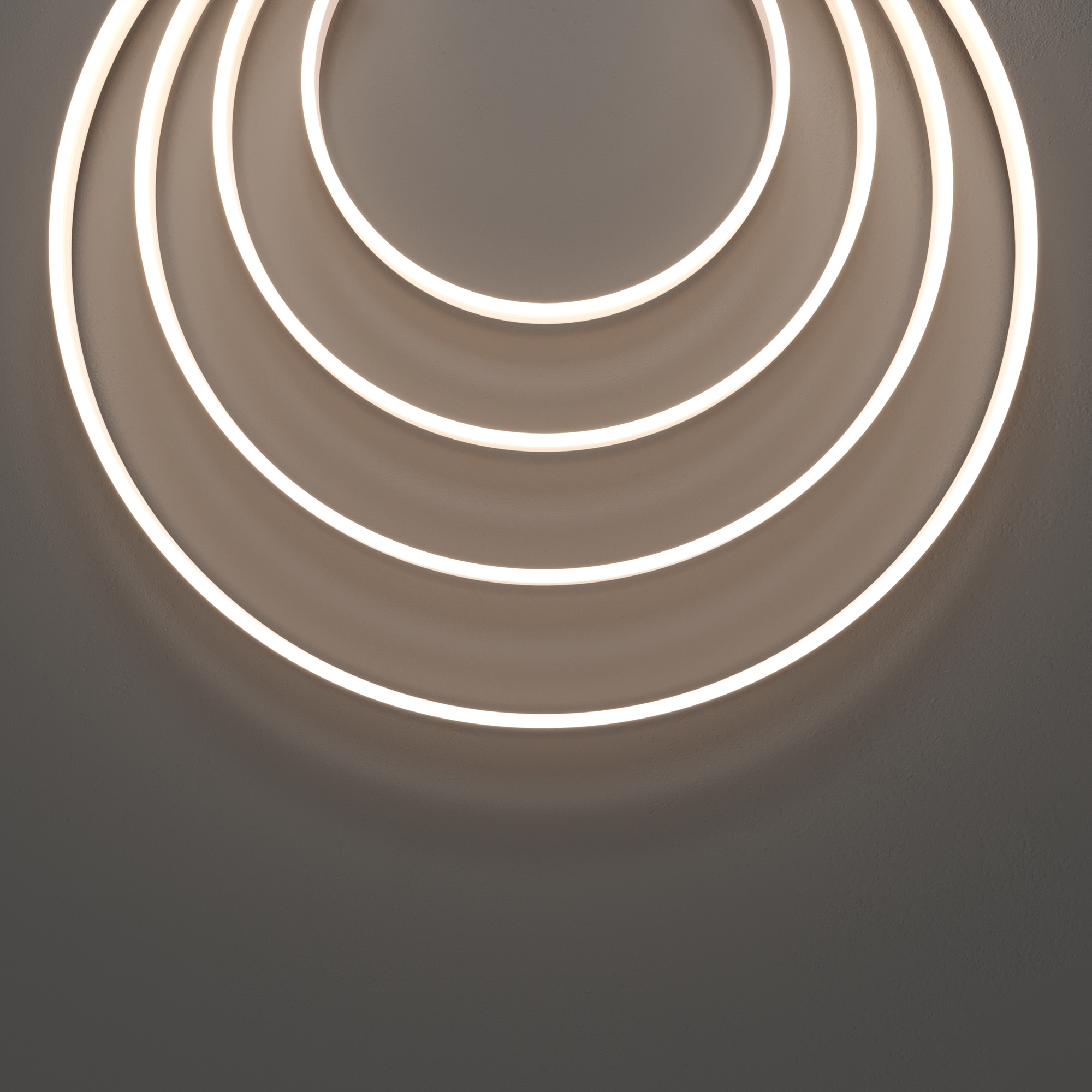 Гибкий неон с вертикальным изгибом позволяет создавать динамичные световые решения, огибая контуры в вертикальной плоскости. Мягкий рассеянный свет, направленный вверх, идеально подойдет для контурной подсветки потолков, ниш, элементов интерьера и фасадов зданий. Высокая степень защиты от пыли и влаги IP67 позволяет использовать неон как в сухих, так и во влажных помещениях, а также отлично подойдет для подсветки на улице.