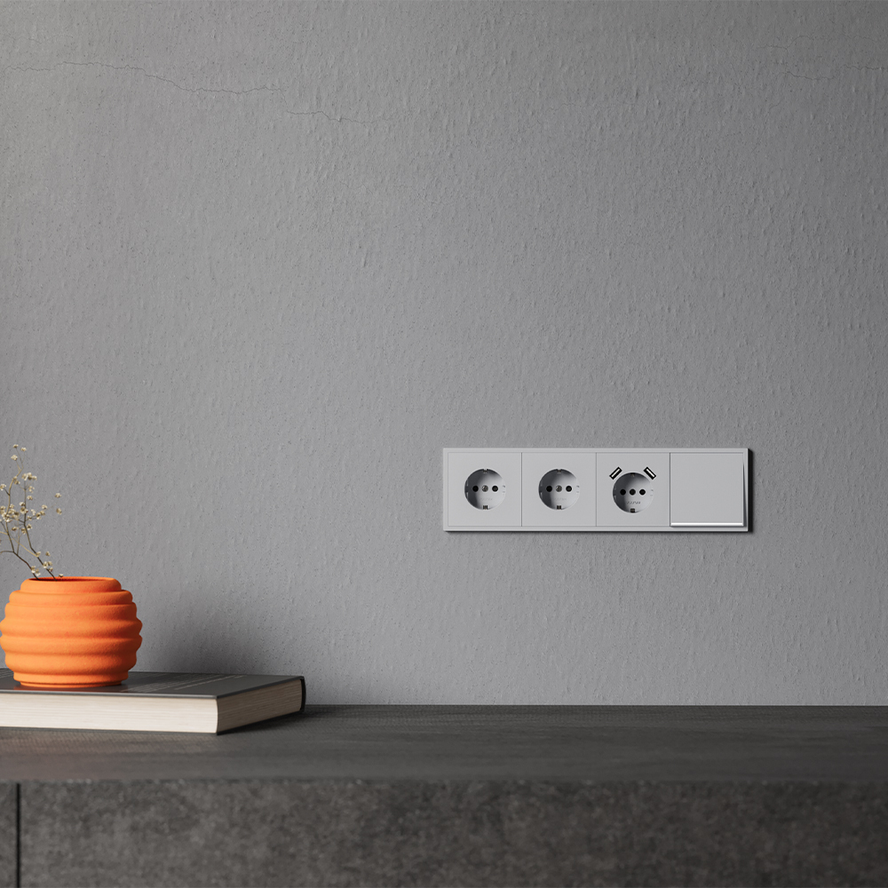 Модульная система серии S70 с раздельной поставкой механизмов, накладок и рамок позволяет монтировать электротехническую основу во время черновых работ, а выбор стилевого решения отложить до завершения дизайн-проекта. При смене интерьера вы легко обновите внешний вид, заменив только лицевые панели без вмешательства в проводку. Универсальный светло-серый цвет — совершенная ахроматическая основа для современных интерьеров. Он мягко объединяет элементы пространства, создавая сбалансированную и эстетически безупречную среду.