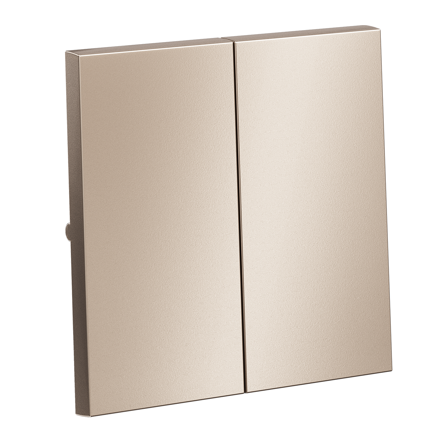 Материал и долговечность: Гальванизированный литой металл с устойчивостью к царапинам, выцветанию и отпечаткам. Совместимость: Полная интеграция с механизмами и рамками S70 для вертикального/горизонтального монтажа. Дизайн: Четыре элегантных цвета — латунь, платина, никель и антрацит с эффектом визуальной глубины