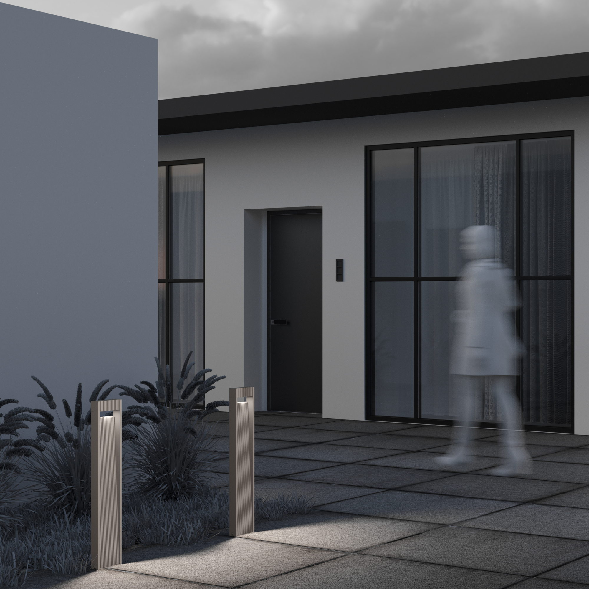 Материал корпуса — алюминий, цвет — графит. Два варианта декоративной поверхности корпуса — рифленый металл и имитация дерева. LED-источник света, цветовая температура — 3000К. Высокая степень защиты — IP65.