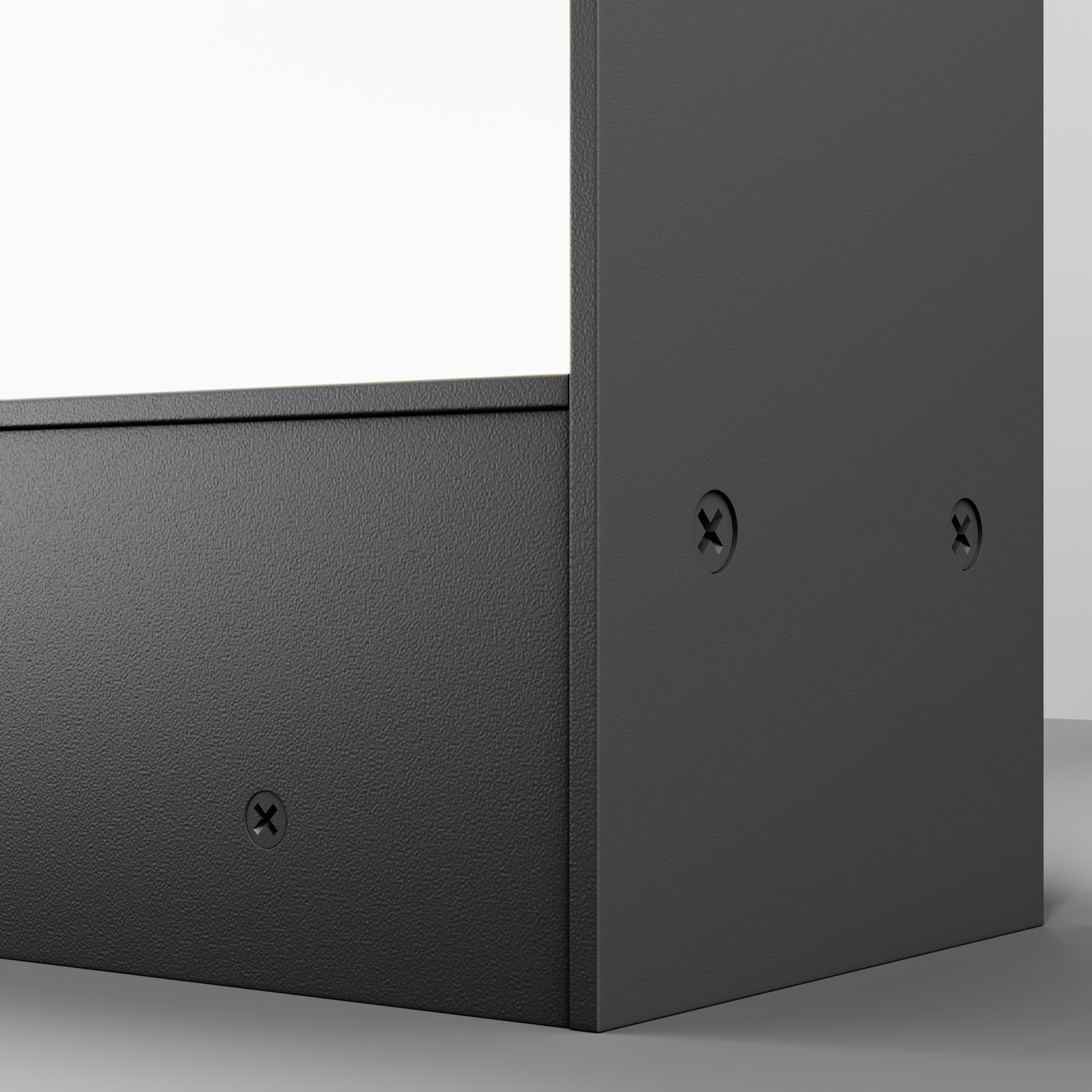 Материал корпуса — алюминий, цвет — графит. Рассеиватель из прочного матового стекла. LED-источник света, цветовая температура — 3000К. Степень защиты — IP65. Подходят для основного освещения.