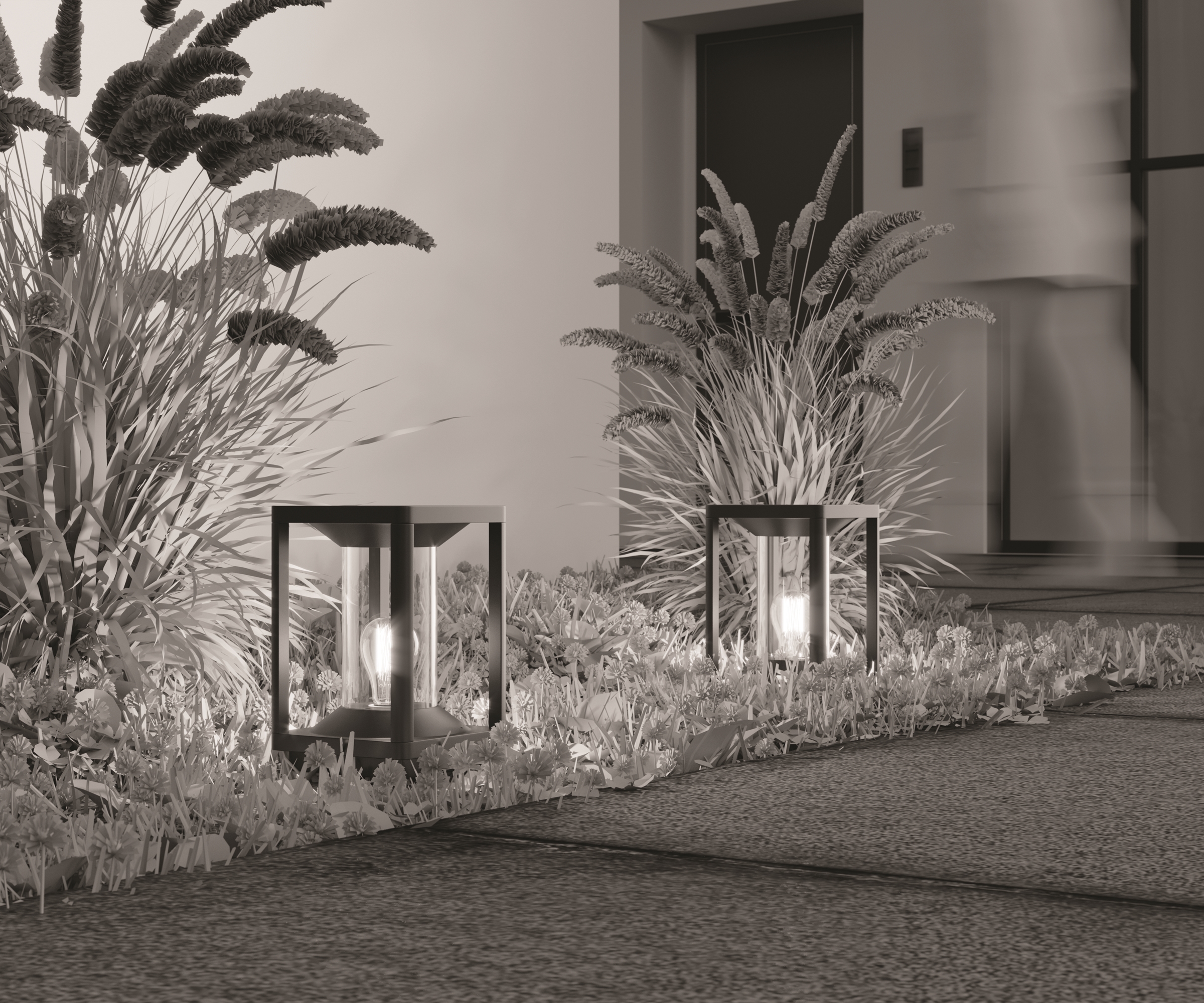 Материал корпуса — алюминий, цвет — графит. Материал рассеивателя — PC-пластик. Источник света — лампа с цоколем Е27. Наличие моделей со встроенным датчиком движения. Степень защиты от пыли и влаги — IP65.
