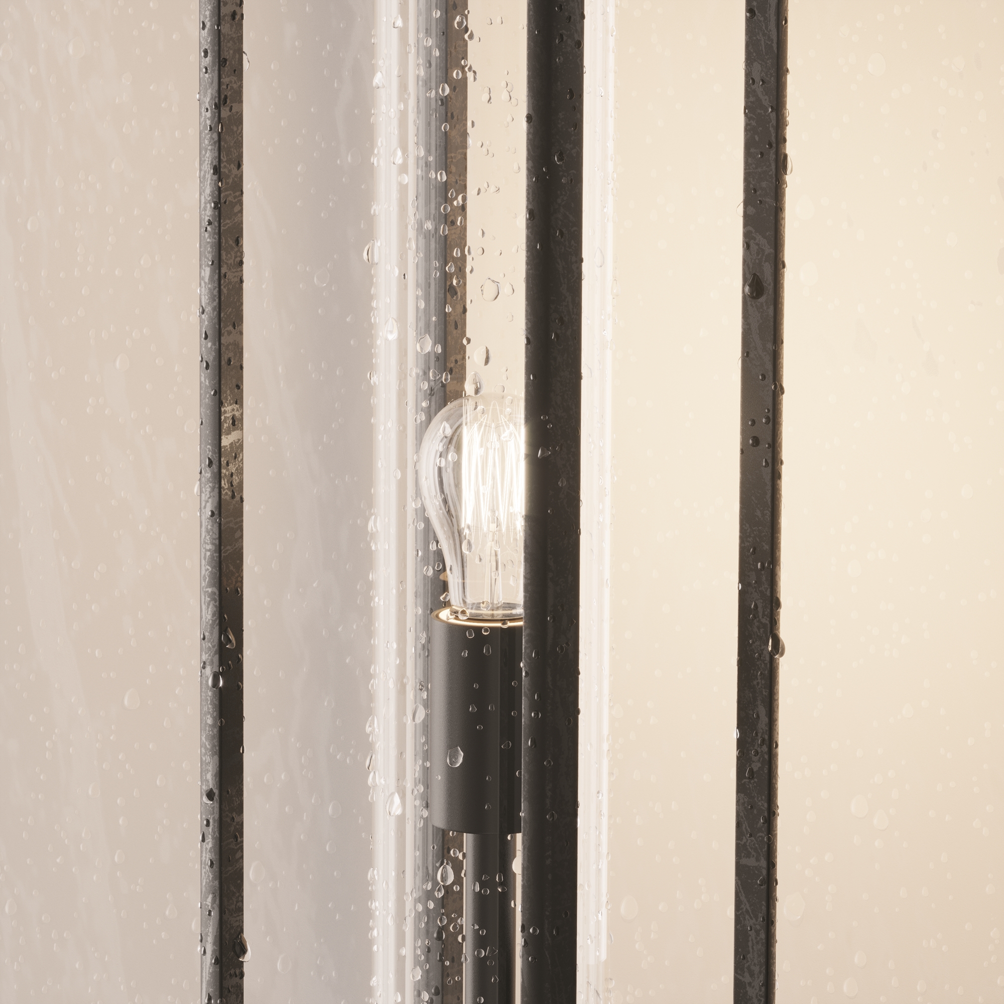 Материал корпуса — алюминий, цвет — графит. Материал рассеивателя — PC-пластик. Источник света — лампа с цоколем Е27. Наличие моделей со встроенным датчиком движения. Степень защиты от пыли и влаги — IP65.