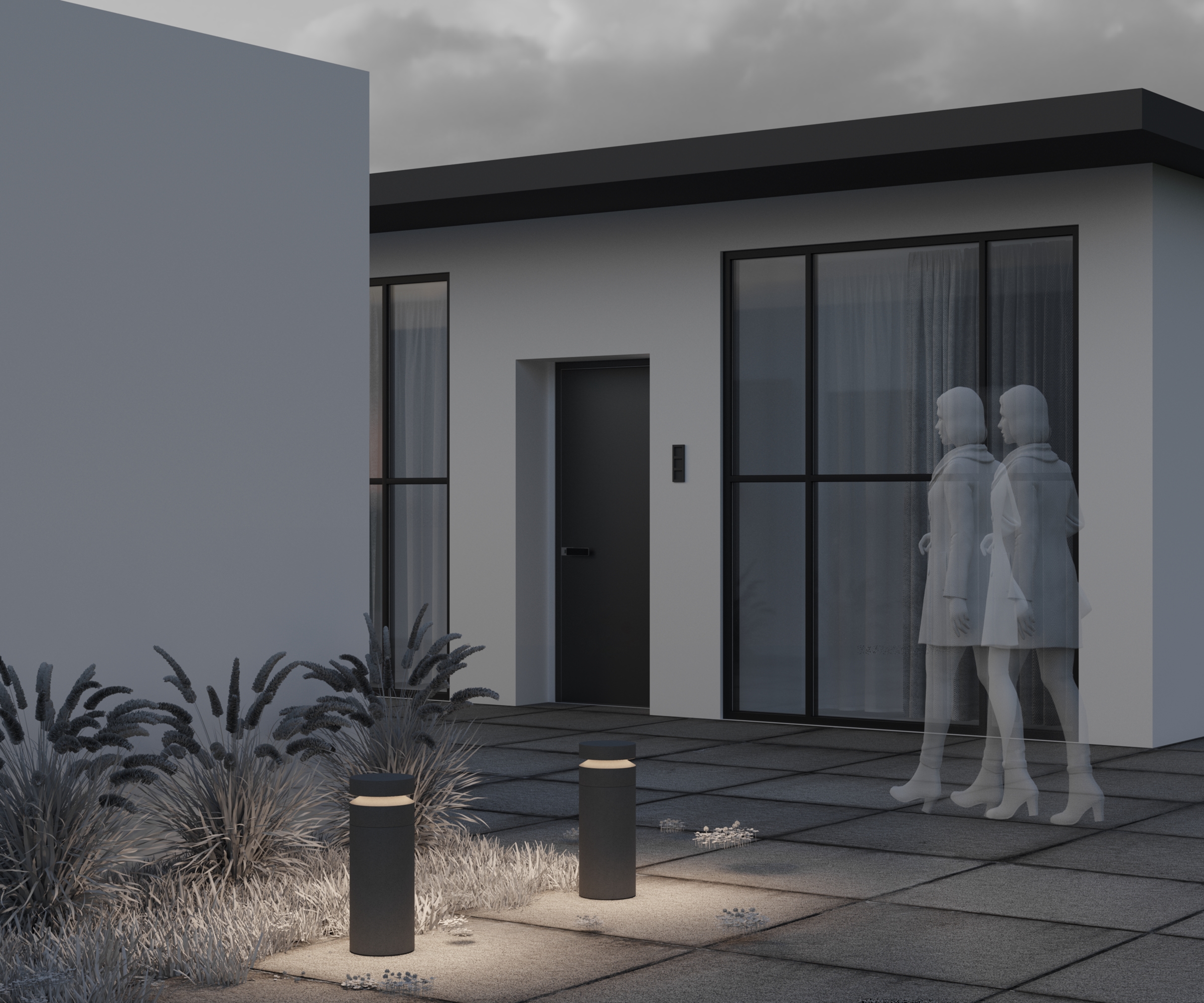 Материал арматуры — основание из алюминия, основная часть из цемента. Цвет — серый. Два вида корпуса — прямоугольный и цилиндр. Защита — IP65. LED-источник света. Цветовая температура 3000К. Высокий индекс цветопередачи CRI 90 — естественная цветопередача.