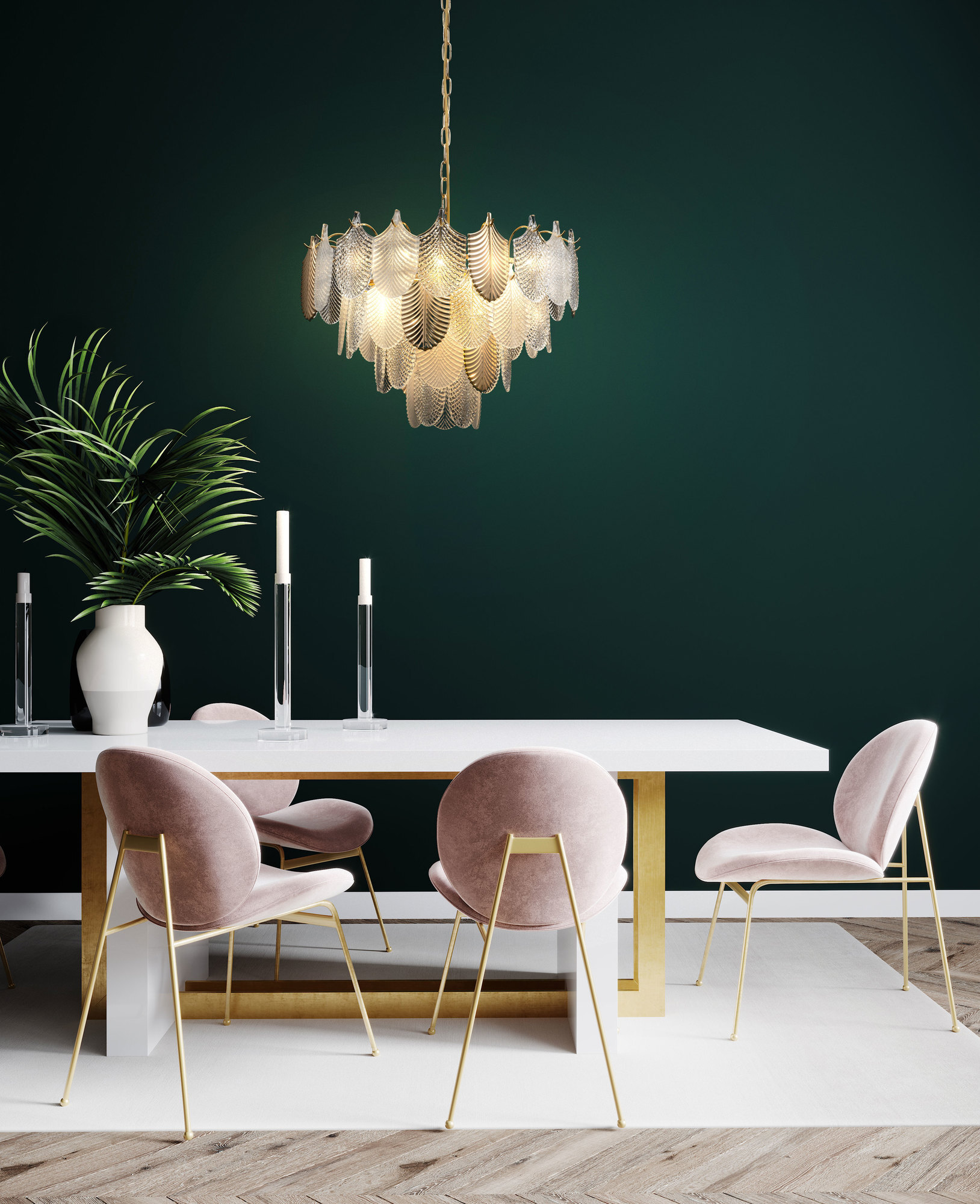 Металлическая арматура. Цвет – французское золото. Декор – рельефные лепестки двух видов: в тон арматуре и из прозрачного фактурного стекла. Современная интерпретация флористического дизайна. Источник света – лампа с цоколем Е14.