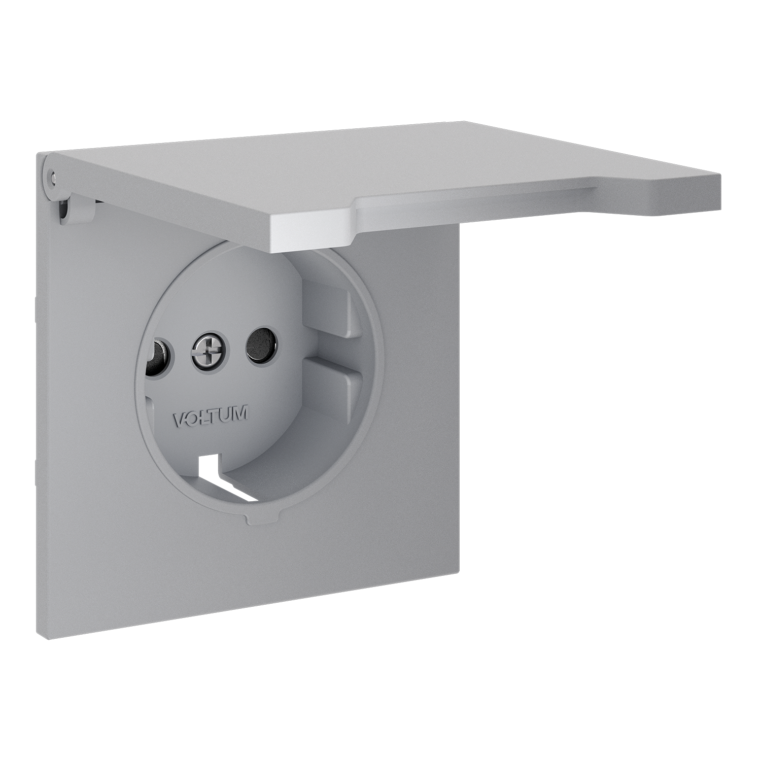 Накладка для розетки с заземлением, защитными шторками и крышкой, S70 (серый)