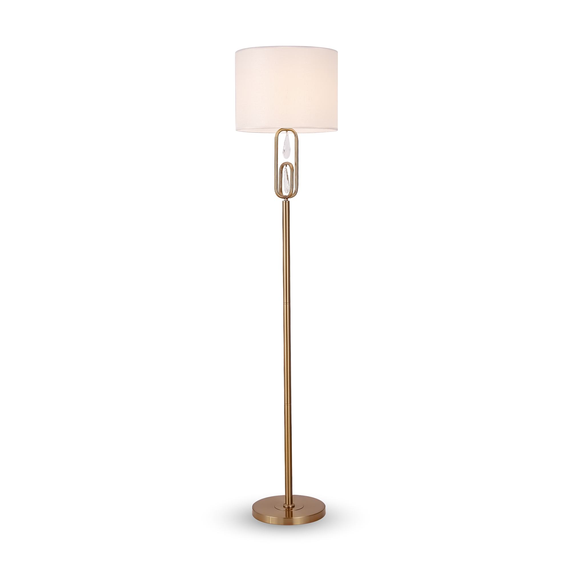 Материал арматуры – нержавеющая сталь, цвет – хром. Материал абажуров – текстиль на ПВХ, цвет – белый. Декор – прозрачное стекло. Акцентные стеклянные кристаллы на рожках со сложной огранкой.