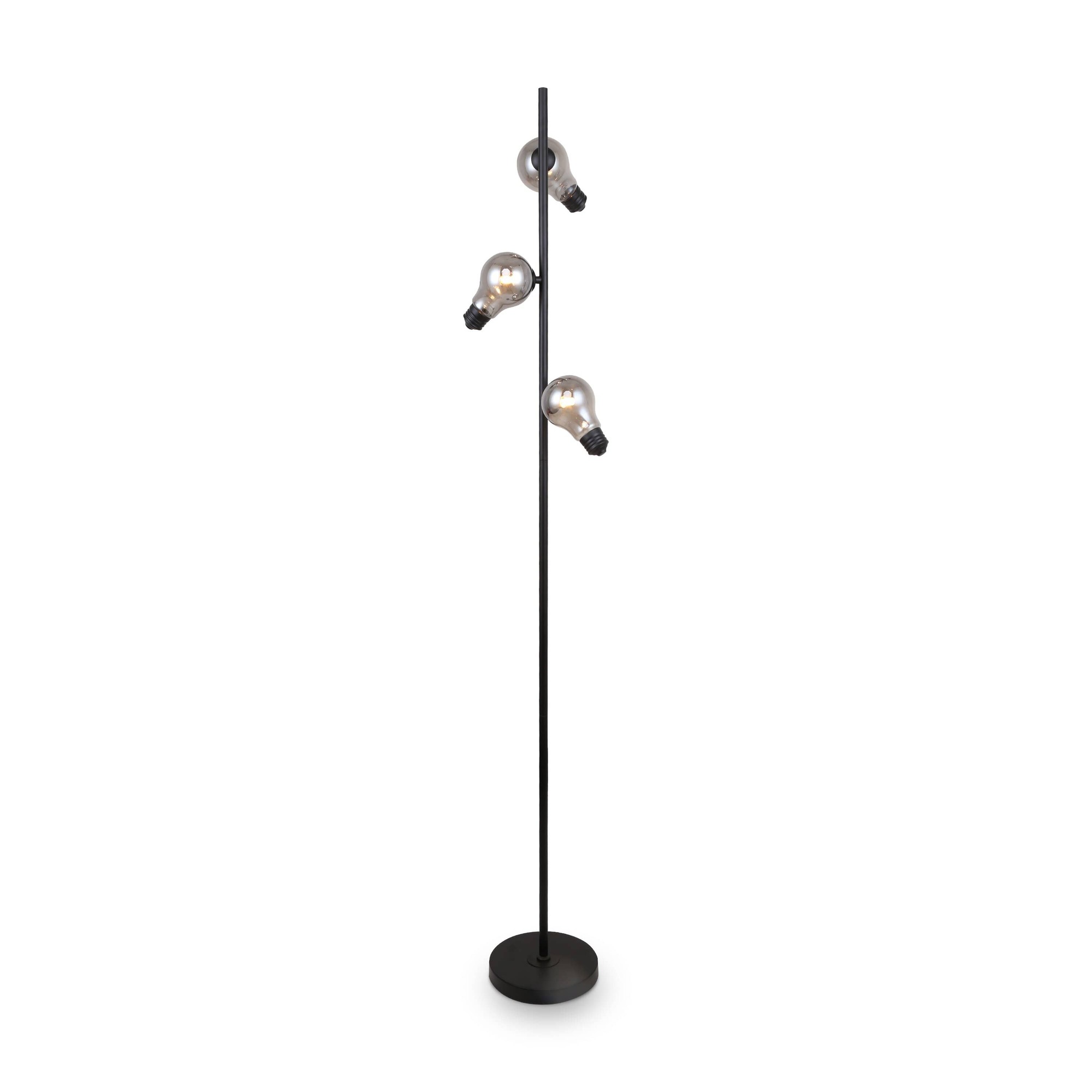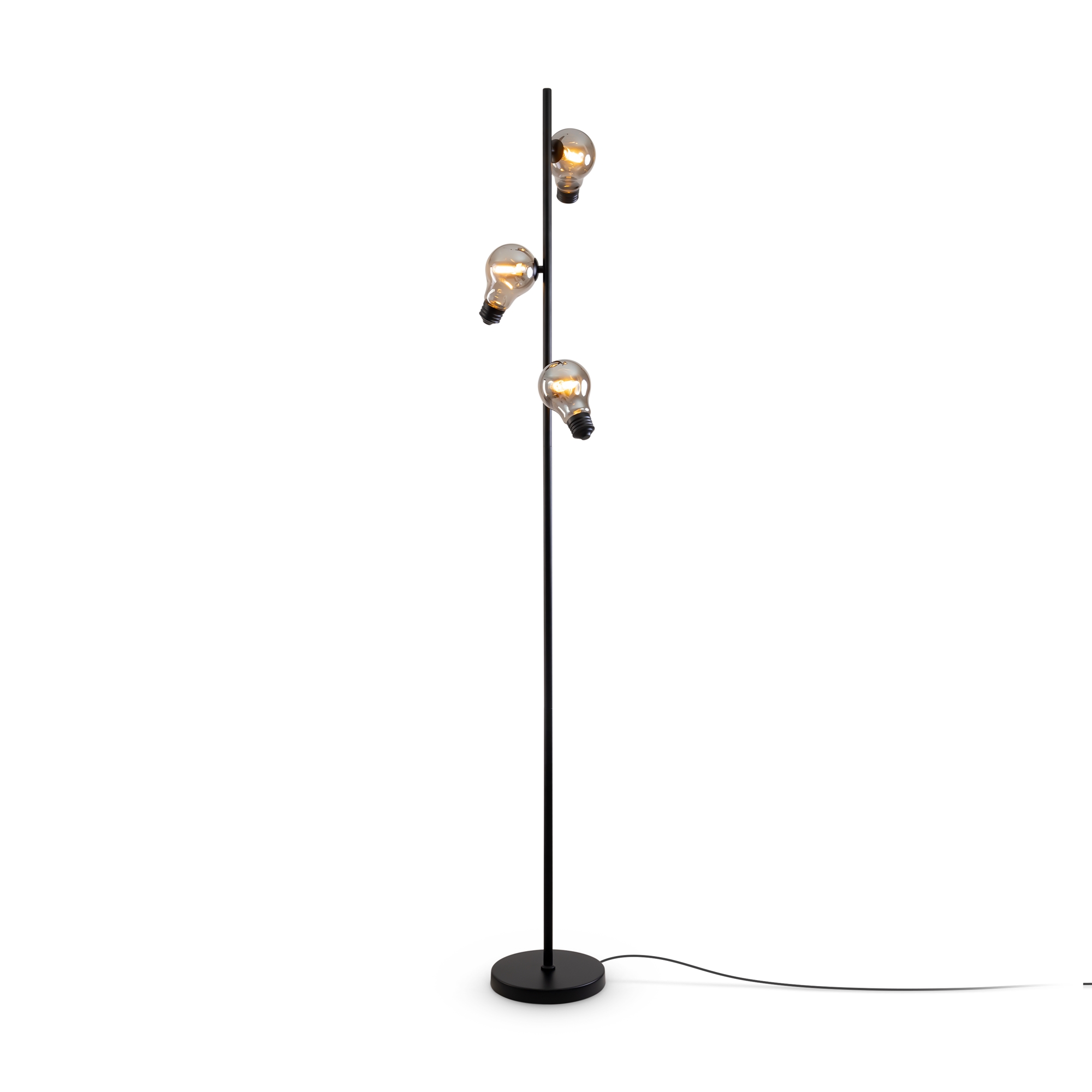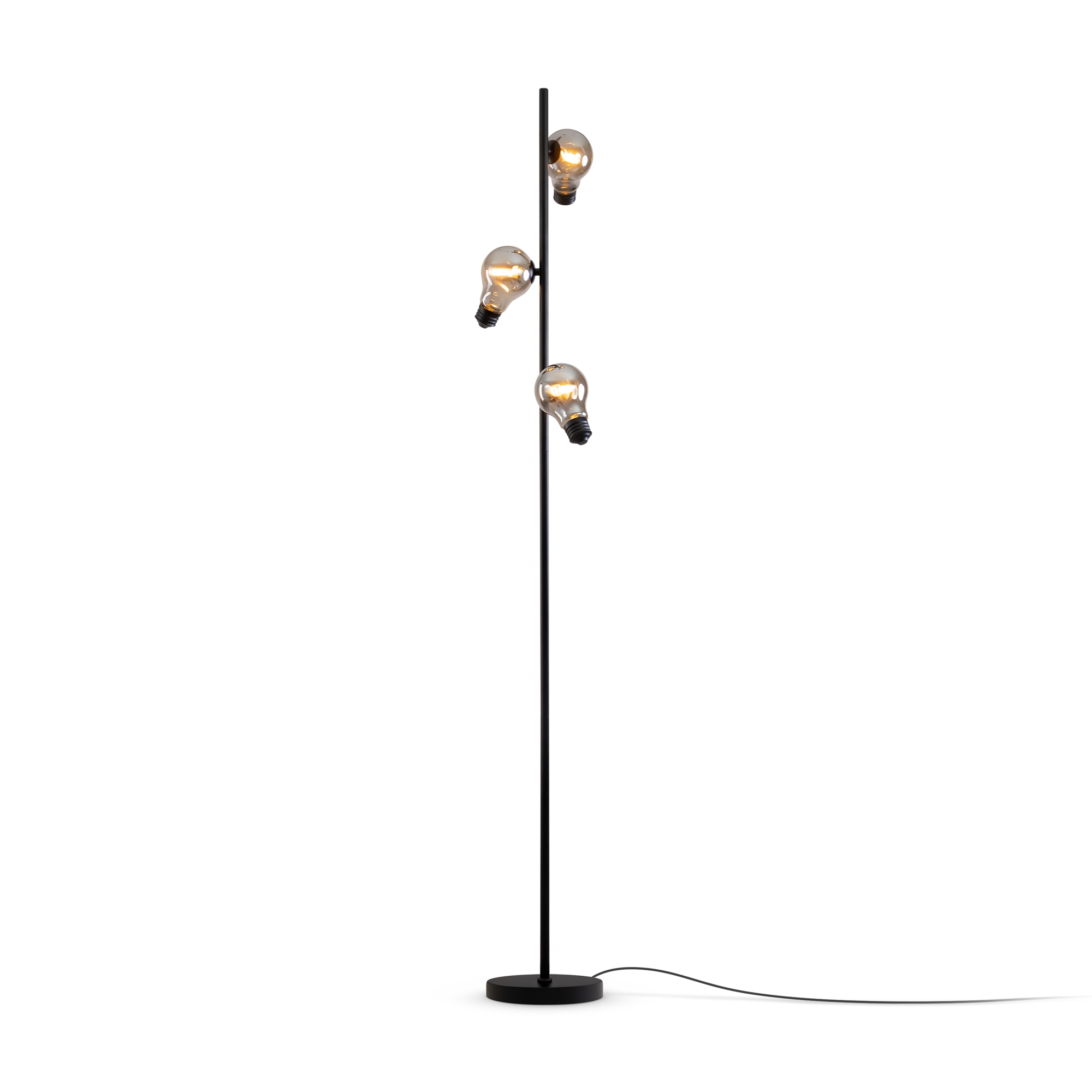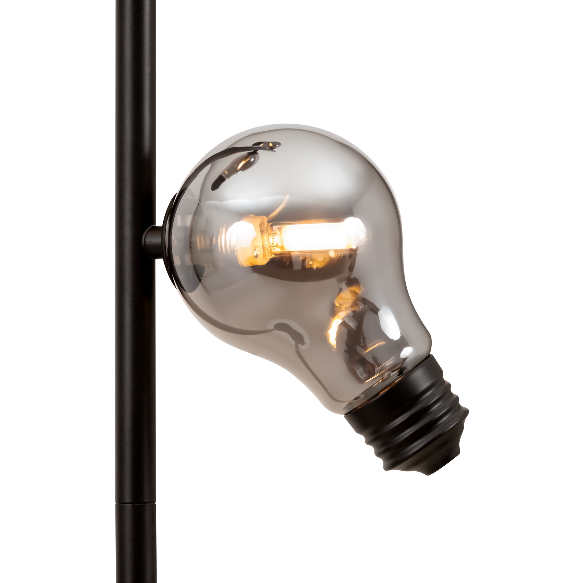Металлическая арматура, цвета — чёрный и латунь. Прозрачные плафоны-лампочки из стекла в тон арматуры хаотично “разбросаны” по острову светильника. Подвесы регулируются по высоте. Источник света — лампа с цоколем G9.