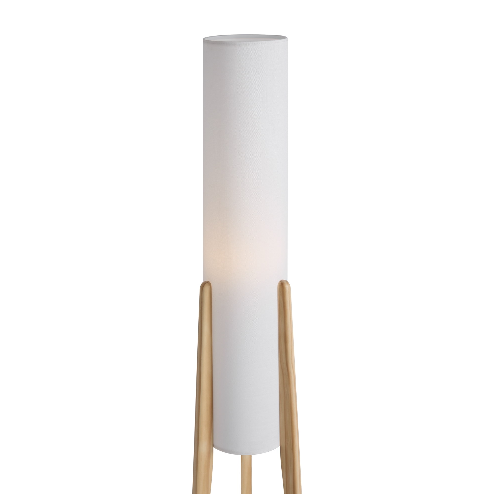 Материал основания — натуральное дерево. Напольный торшер с цоколем E27. Белый тканевый абажур имеет съемную конструкцию для удобной чистки. Сочетание натурального дерева и ткани делает светильник подходящим для создания эко-интерьера.
