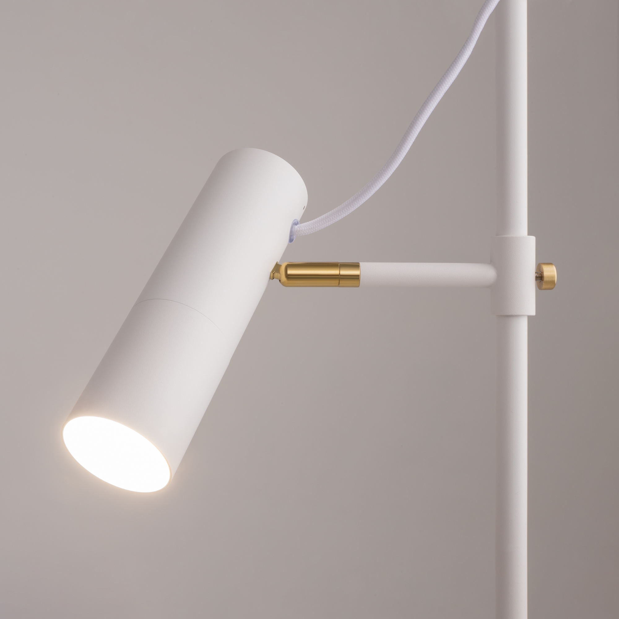 Металлическая арматура, оттенки – черный, белый. Плафон-цилиндр из металла в тон арматуре. Минималистичный дизайн