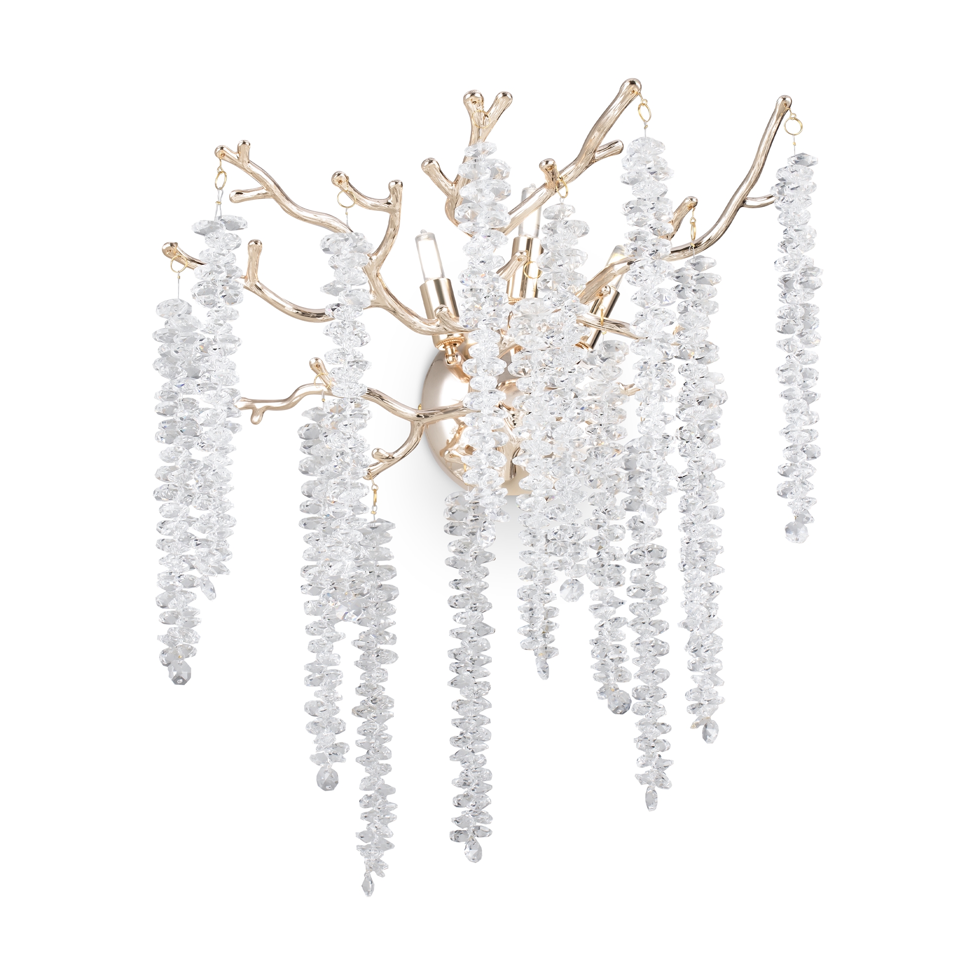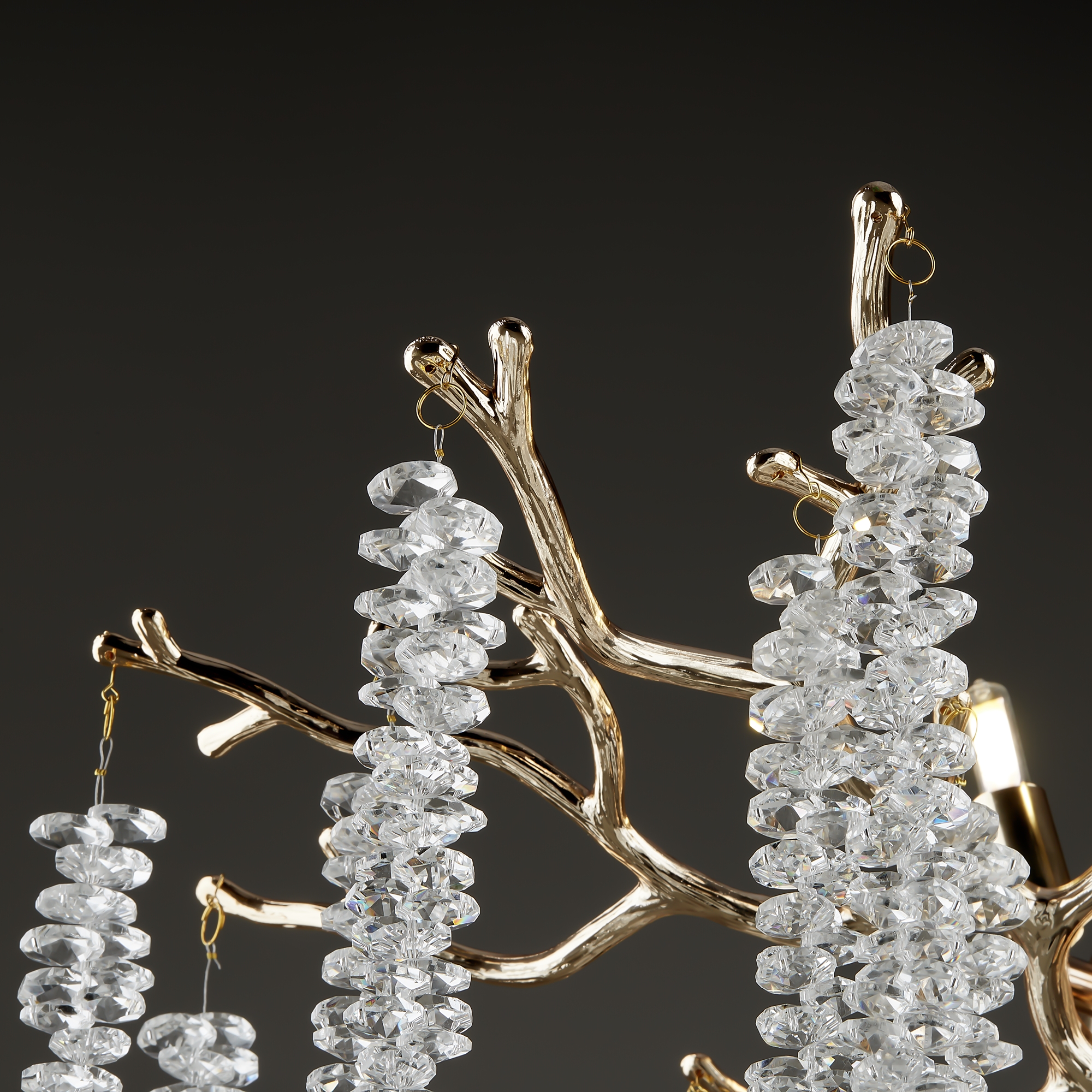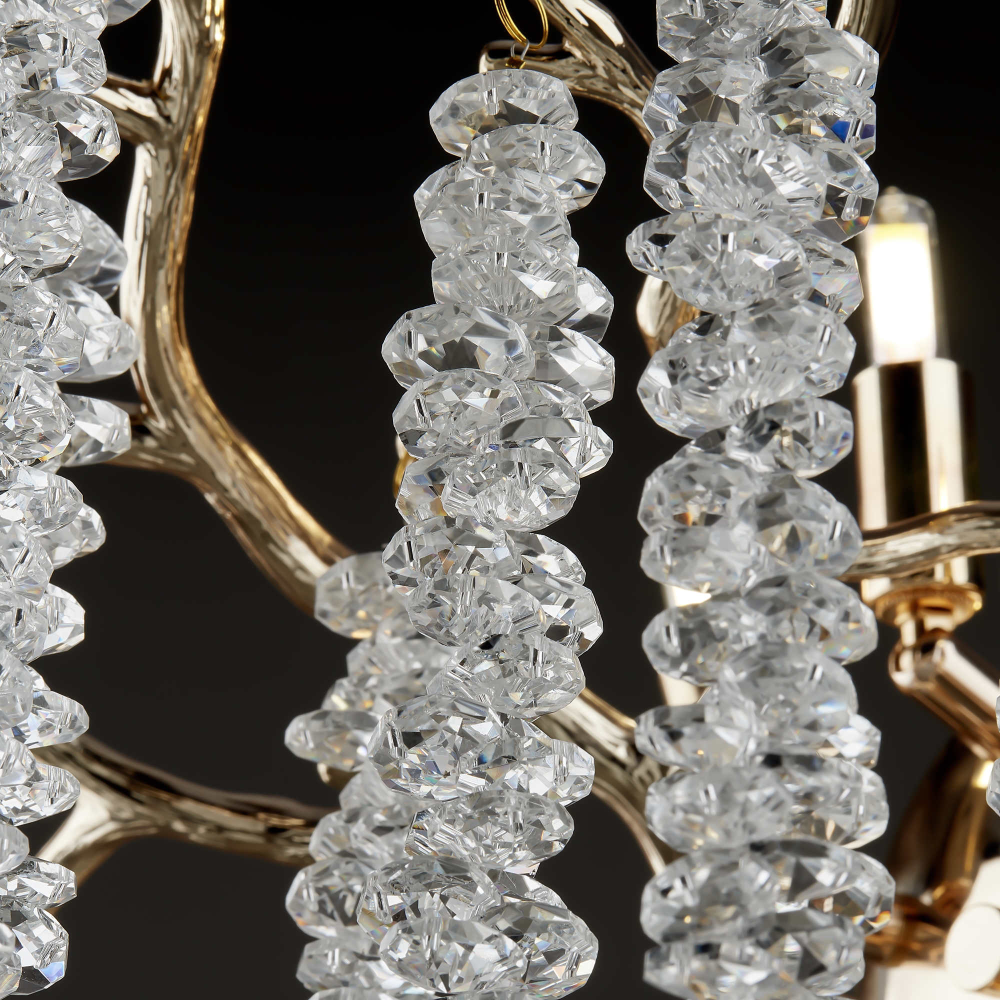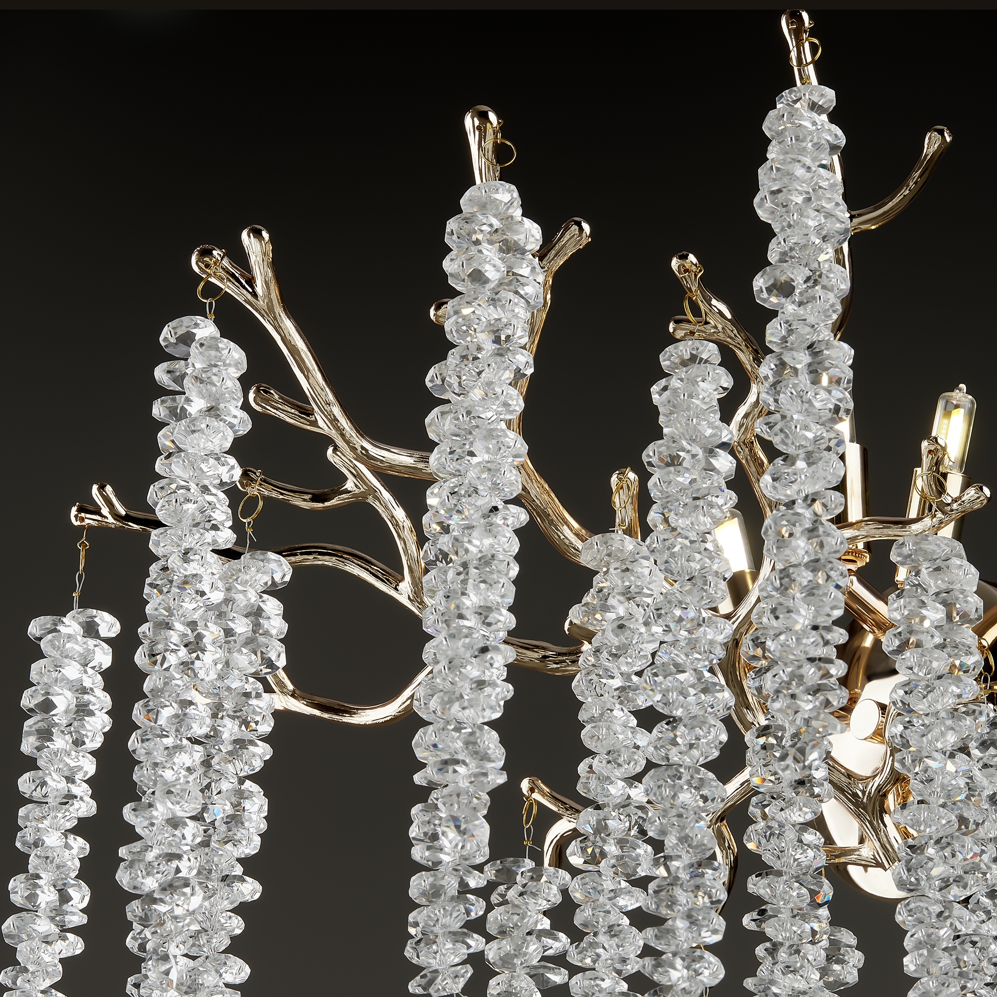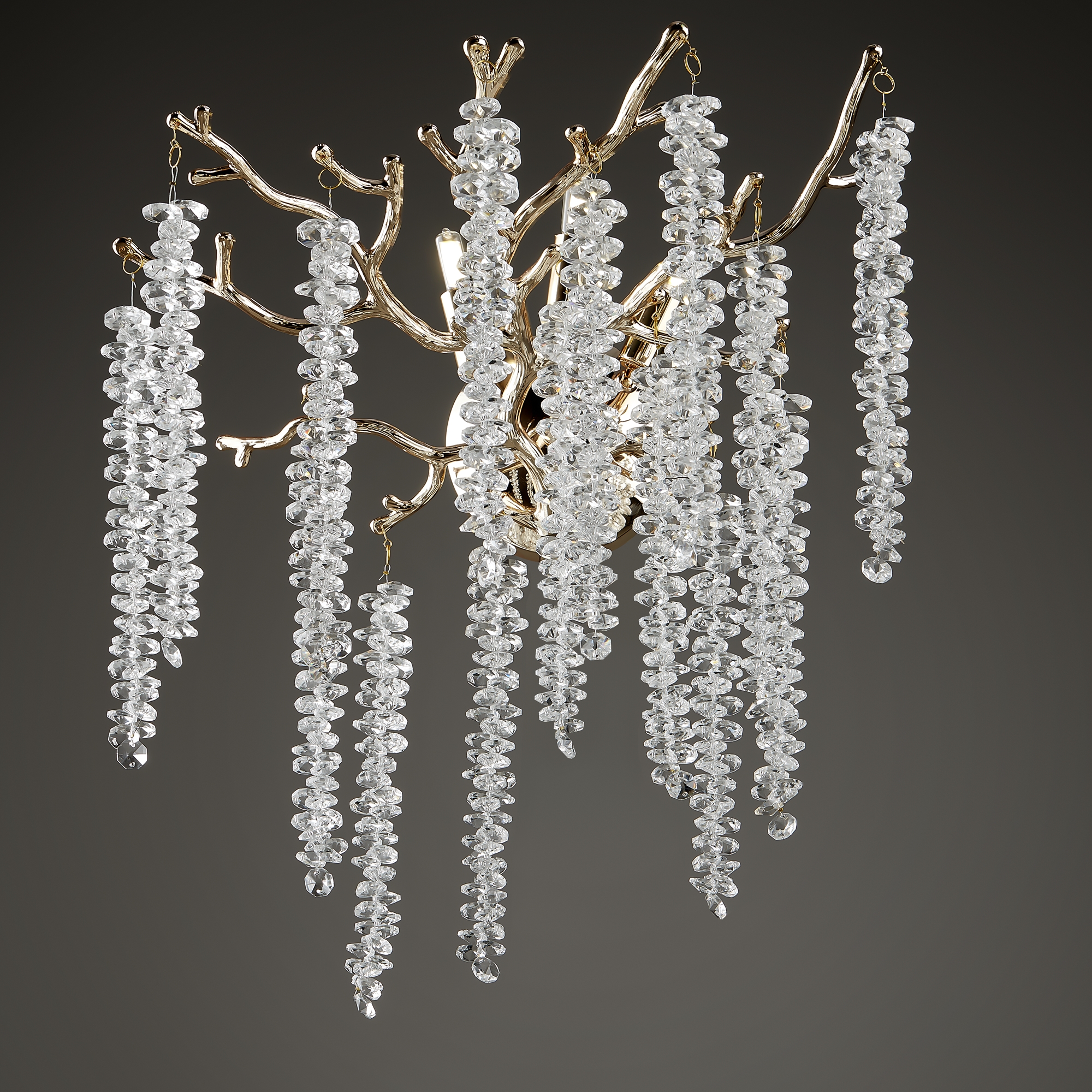 Материалы арматуры —металл, цвет — золото. Хрустальные декоративные элементы напоминают капельки — создают глубокие переливы света. Дизайн в трендовой растительной тематике. Источник света — лампа с цоколем G9 и с поворотной функцией.