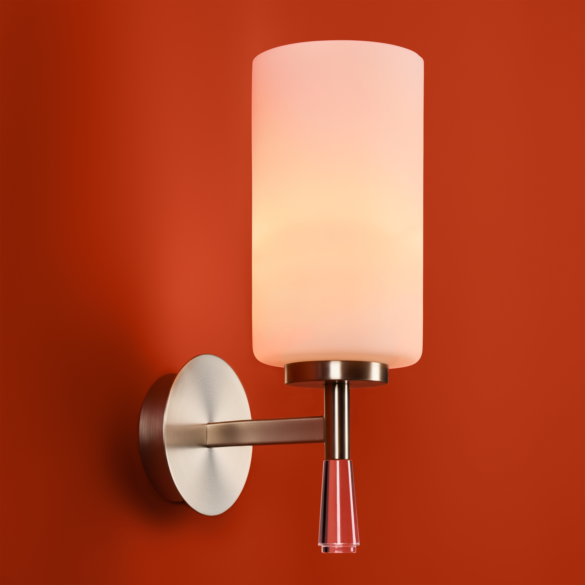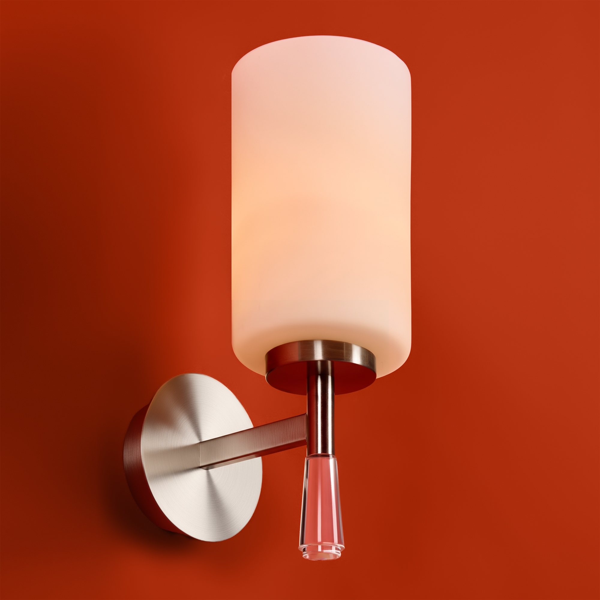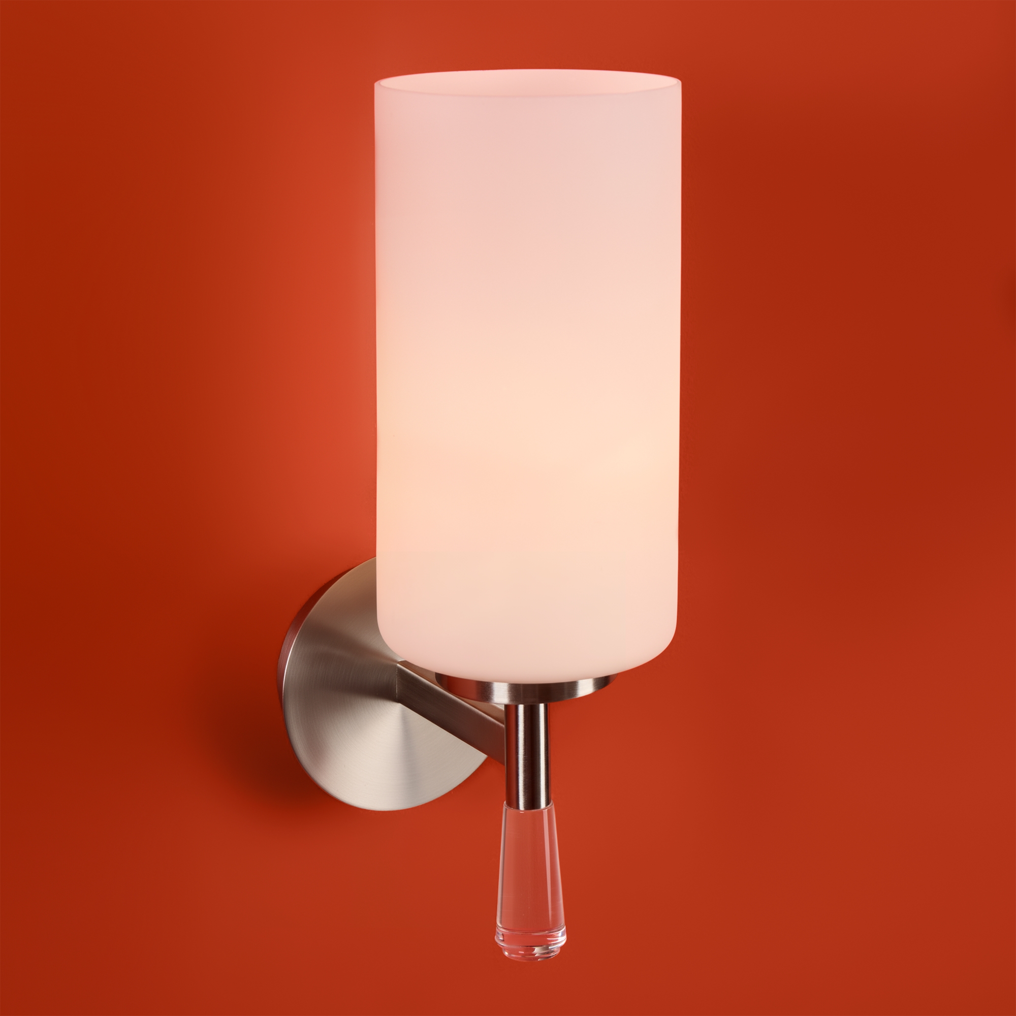 Металлическая арматура: латунь или никель (новинка серии).Белые стеклянные плафоны цилиндрической формы, направленные вверх.. Хрустальное основание с акриловыми каплями. Лампа E27.