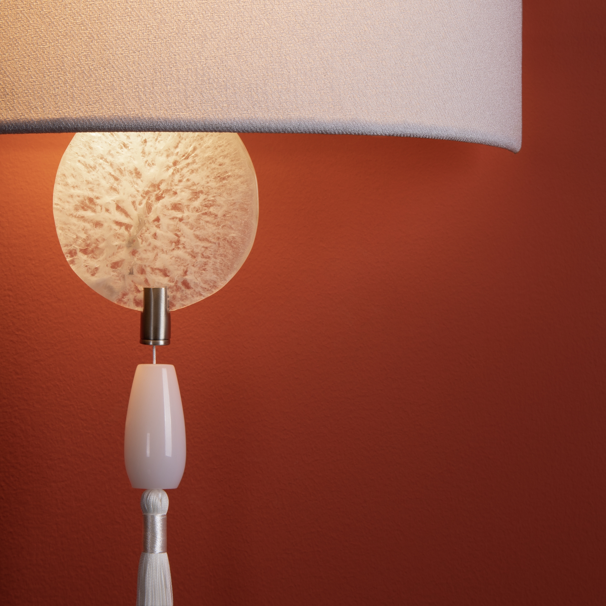 Металлическая арматура в цвете никель. Светильники с натуральным агатом, серым тканевым абажуром и декоративными кисточками . Лампы E14 (не в комплекте). Бра с регулируемой высотой.