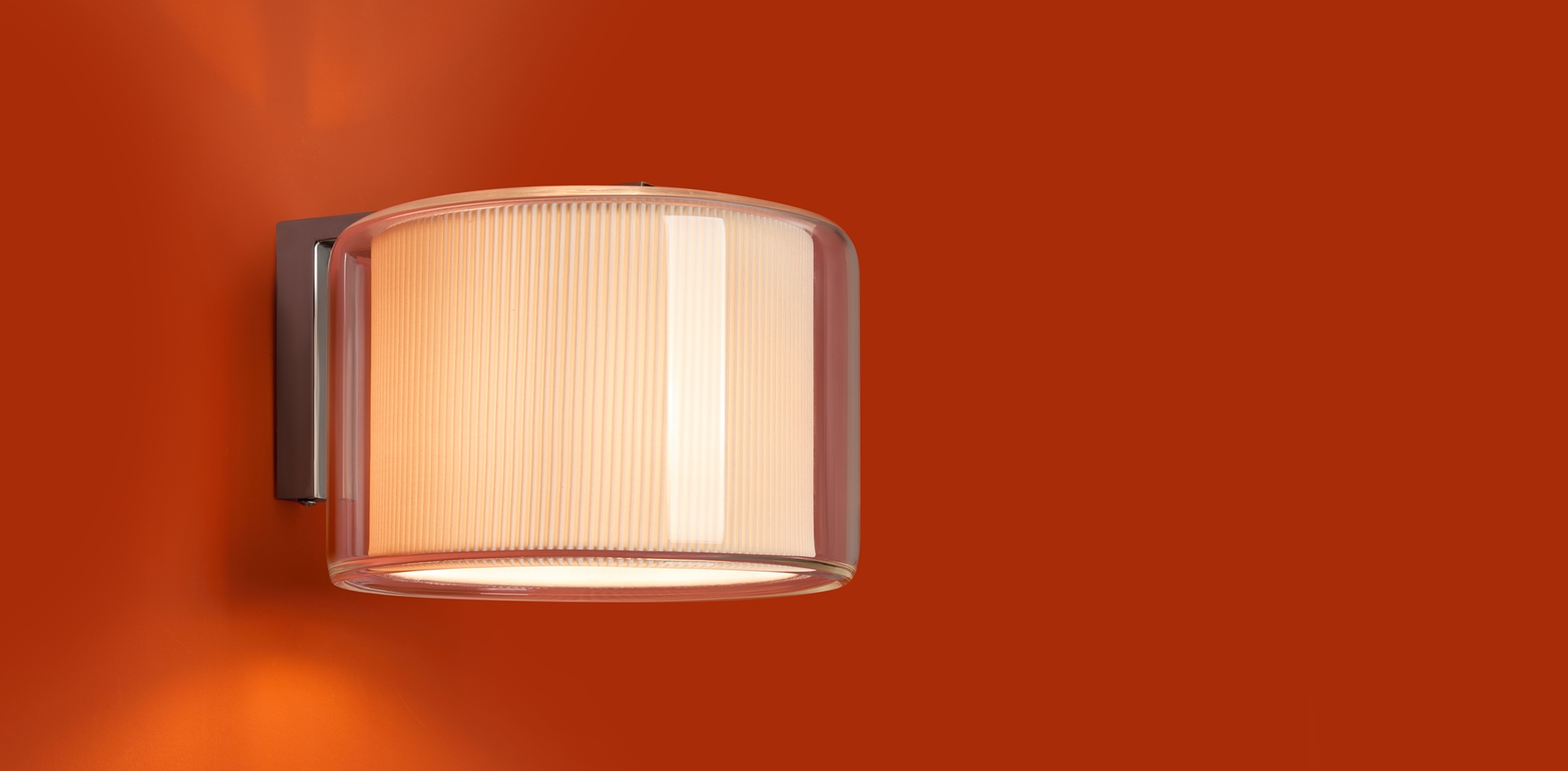 Сочетание стекла и тканевой плиссировки для мягкого рассеянного света. Лампы E27 (в комлекте). Особенность плафонов — их многослойность. В серии представлены подвесной, потолочные и настенный светильники.
