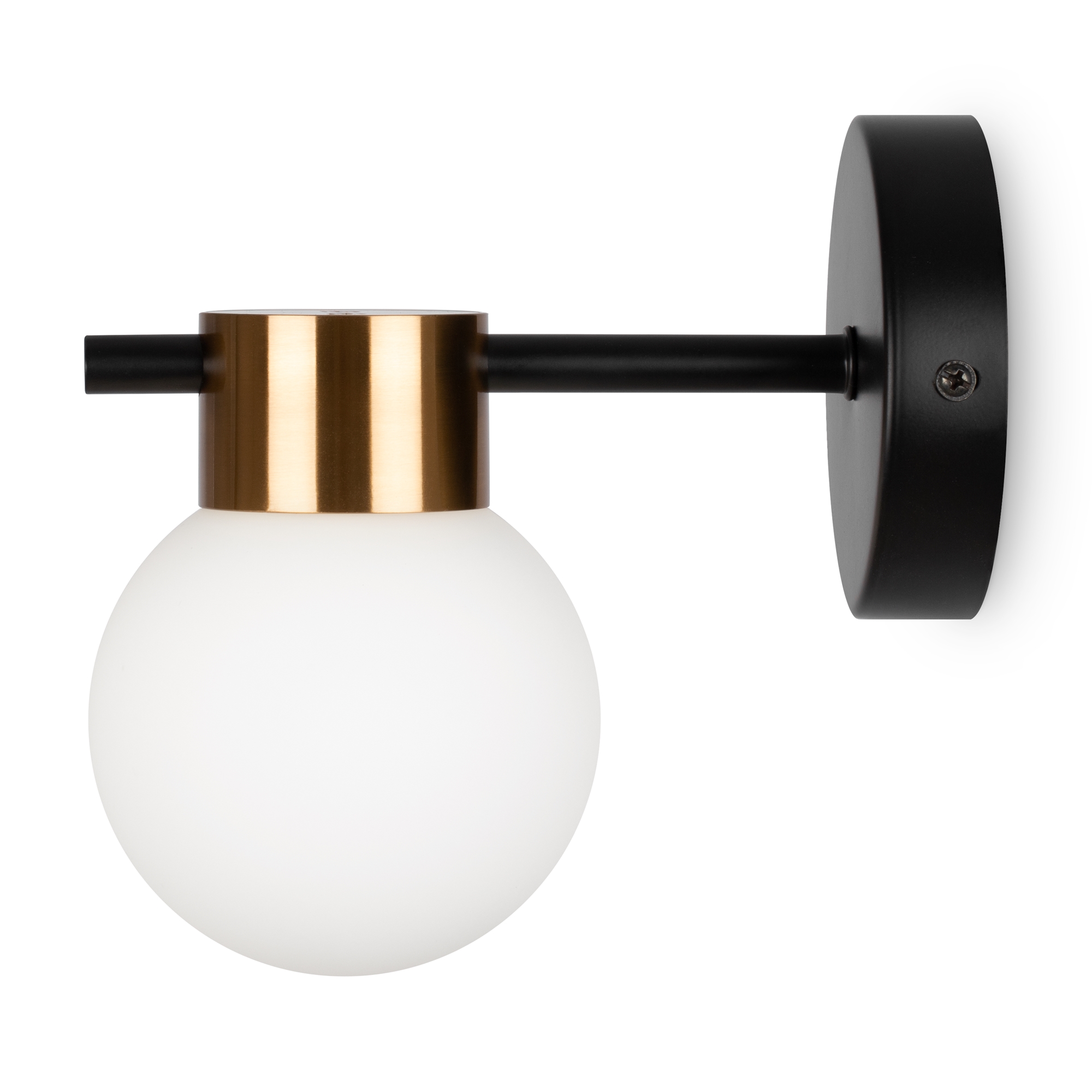 Металлическая арматура, цвет — черный + латунь. Стеклянные плафоны в двух оттенках — матовый белый или дымчатый. Направление плафонов в разные стороны позволяет распределить свет максимально равномерно. Источник светал — лампы с цоколем G9.