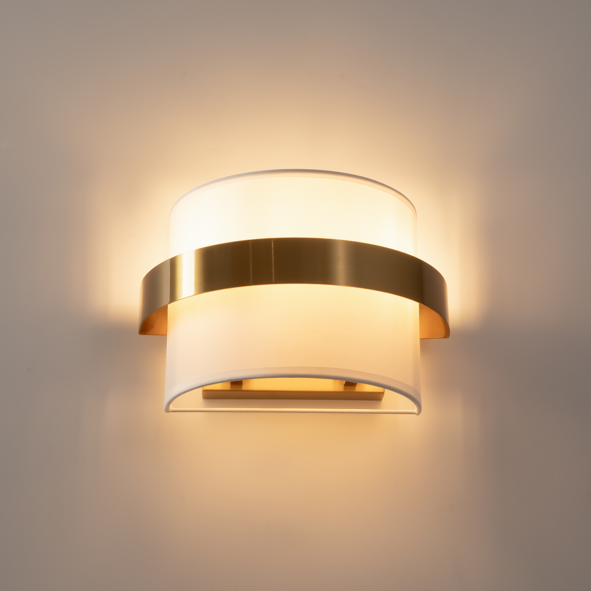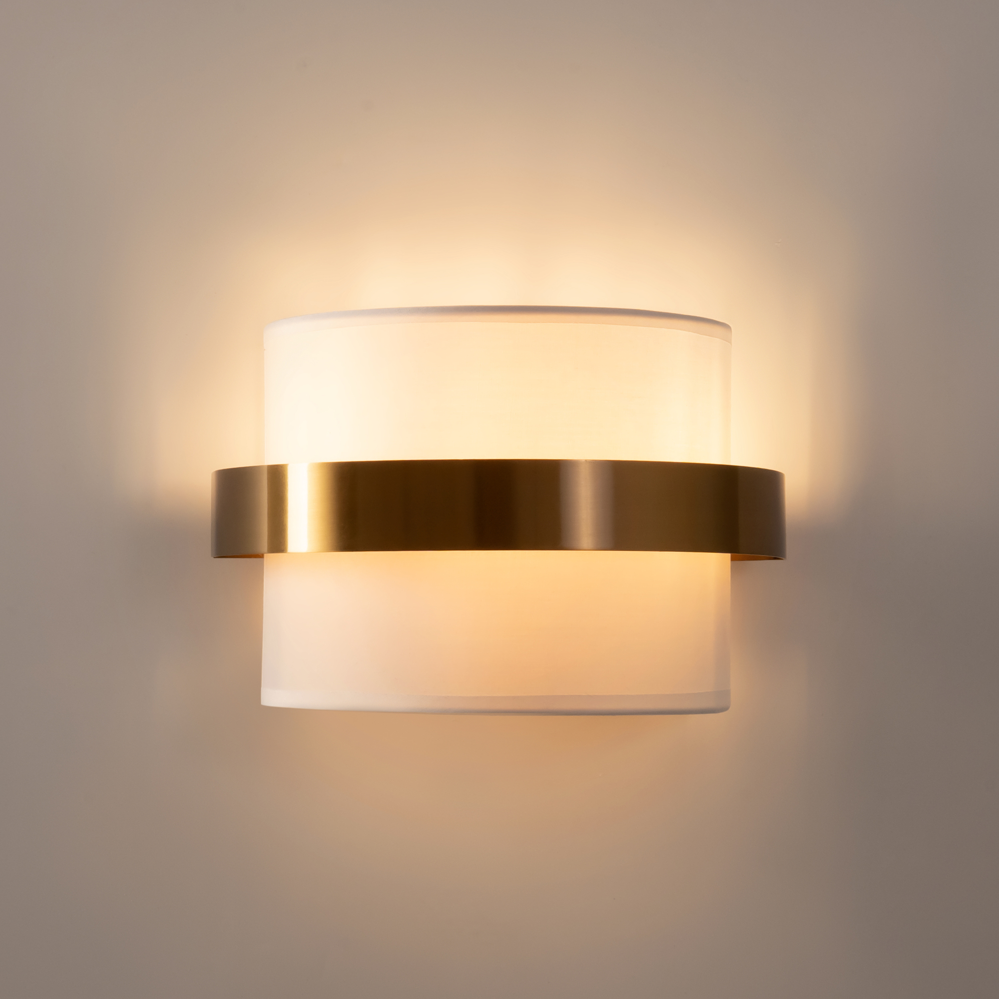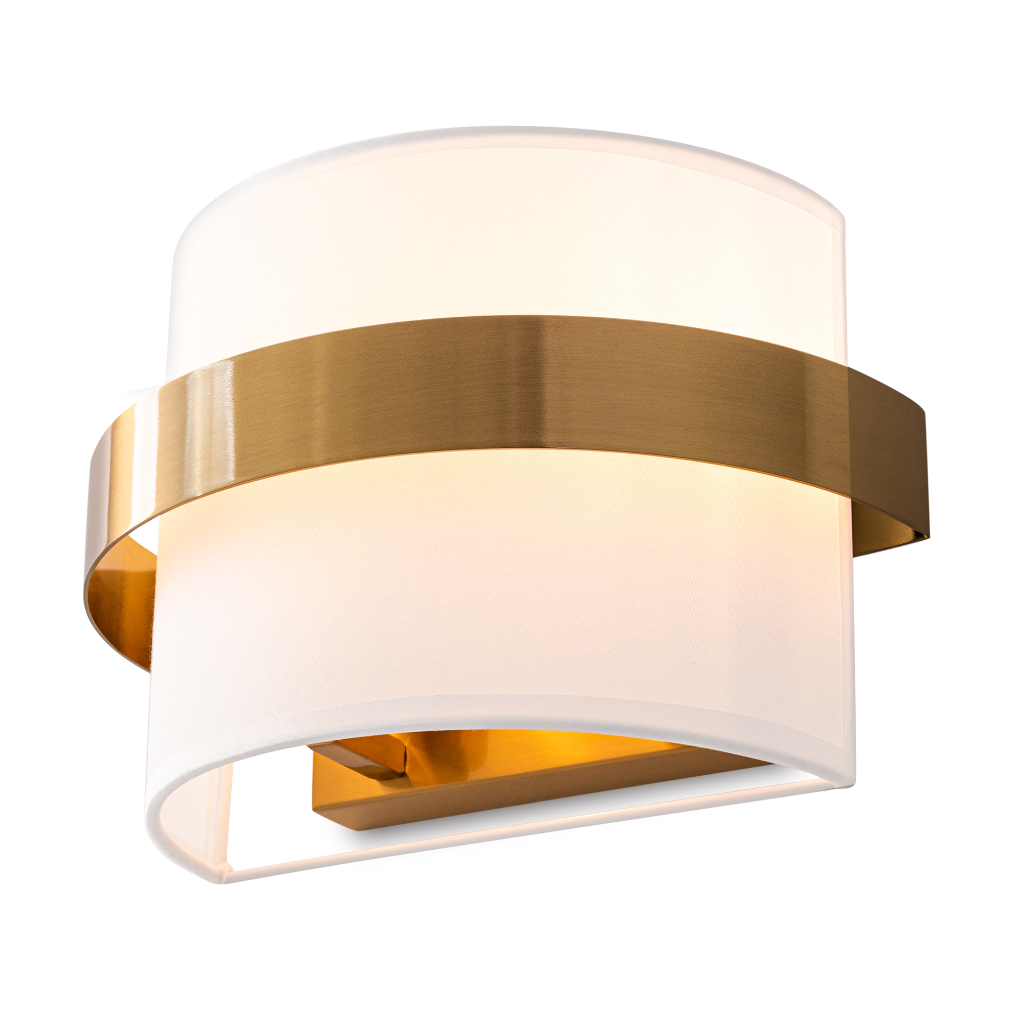 Цилиндрической формы абажур из ткани белого цвета. Декоративная парящая окантовка из металла в цвет арматуры. Регулируется по длине. Компактные размеры подходят для низких потолков и небольших интерьеров. Металлическая арматура, цвет — латунь и никель. Источник света — лампа с цоколем Е14, E27 и для настенного бра дополнительный LED с температурой свечения 3000 K.