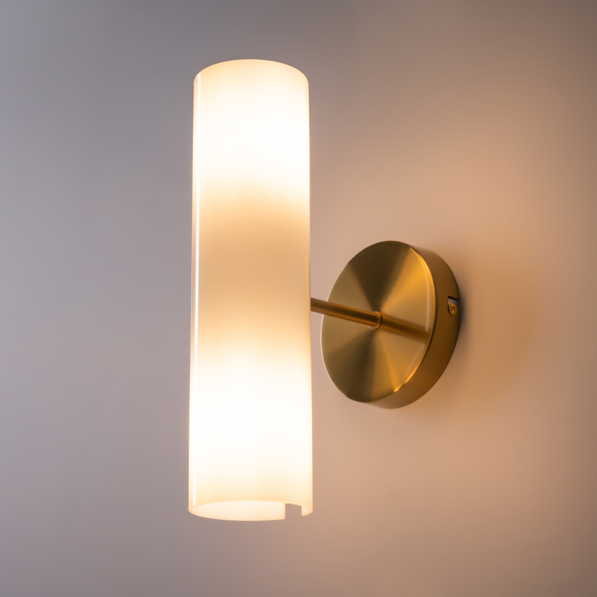 Арматура — металлическая, цвет — латунь. Стеклянные белые плафоны-цилиндры мягко рассеивают свет в стороны. Открытые края плафонов и глянцевая поверхность дают дополнительный свет в вверх и вниз для максимальной освещенности. Источник света — лампа с цоколем Е14.