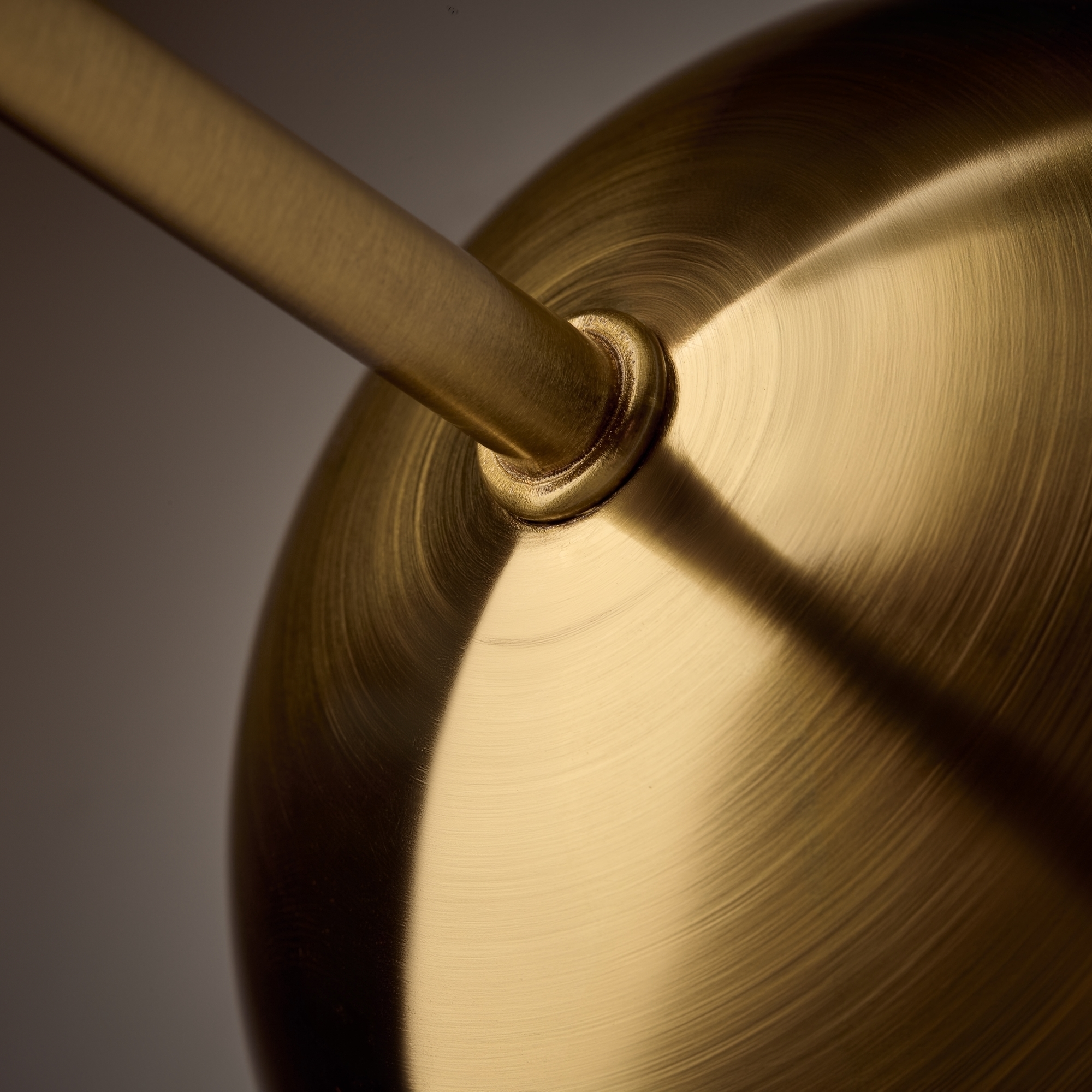 Арматура — металл, цвет — латунь. Двойные плафоны из стекла. Внешний — прозрачный в форме конуса плавно обрамляет контуры внутреннего матового сферического плафона. Свежий взгляд в дизайне на комбинацию форм и фактур. Источником света служит лампа с цоколем G9.