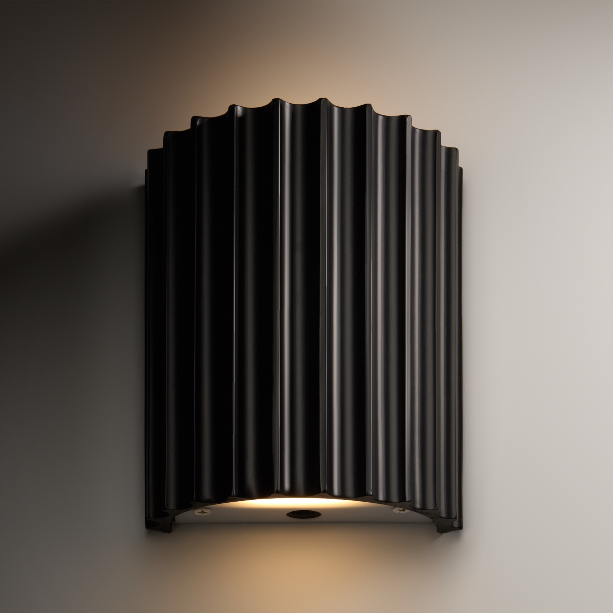 Арматура ресина и металл. Цвета арматуры матовый белый, серый и матовый черный. Глубокий рельеф. Цвета черный, серый, белый. LED источник светит вверх и вниз. Регулируемая цветовая температура — 3000К-4000К-6000К.