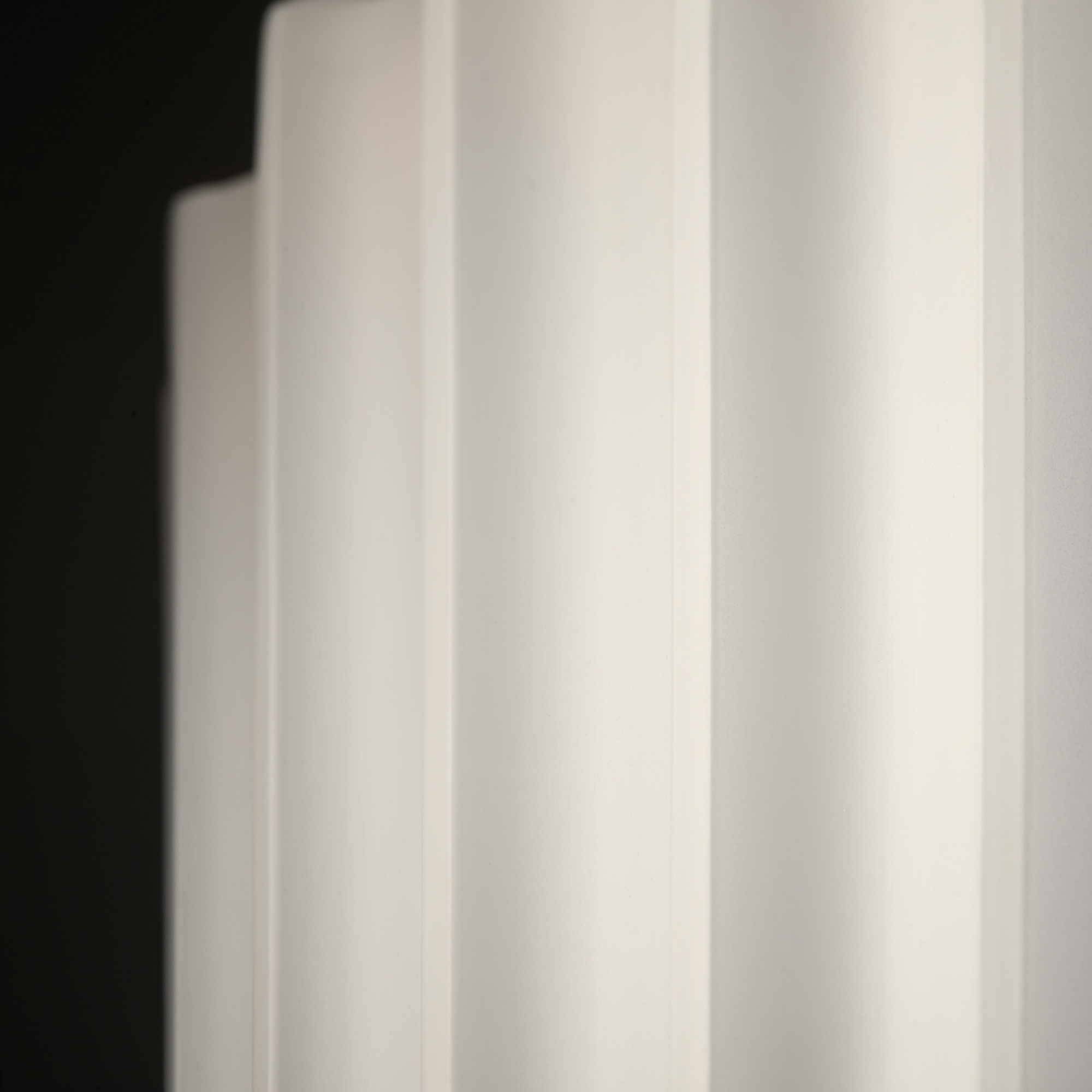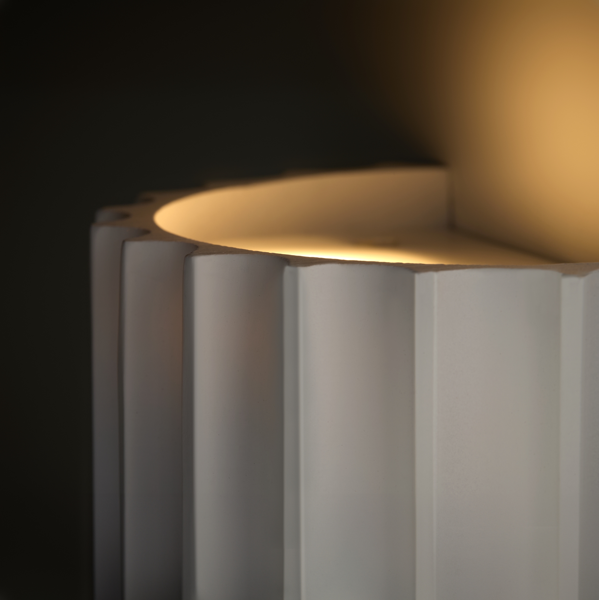 Арматура ресина и металл. Цвета арматуры матовый белый, серый и матовый черный. Глубокий рельеф. Цвета черный, серый, белый. LED источник светит вверх и вниз. Регулируемая цветовая температура — 3000К-4000К-6000К.