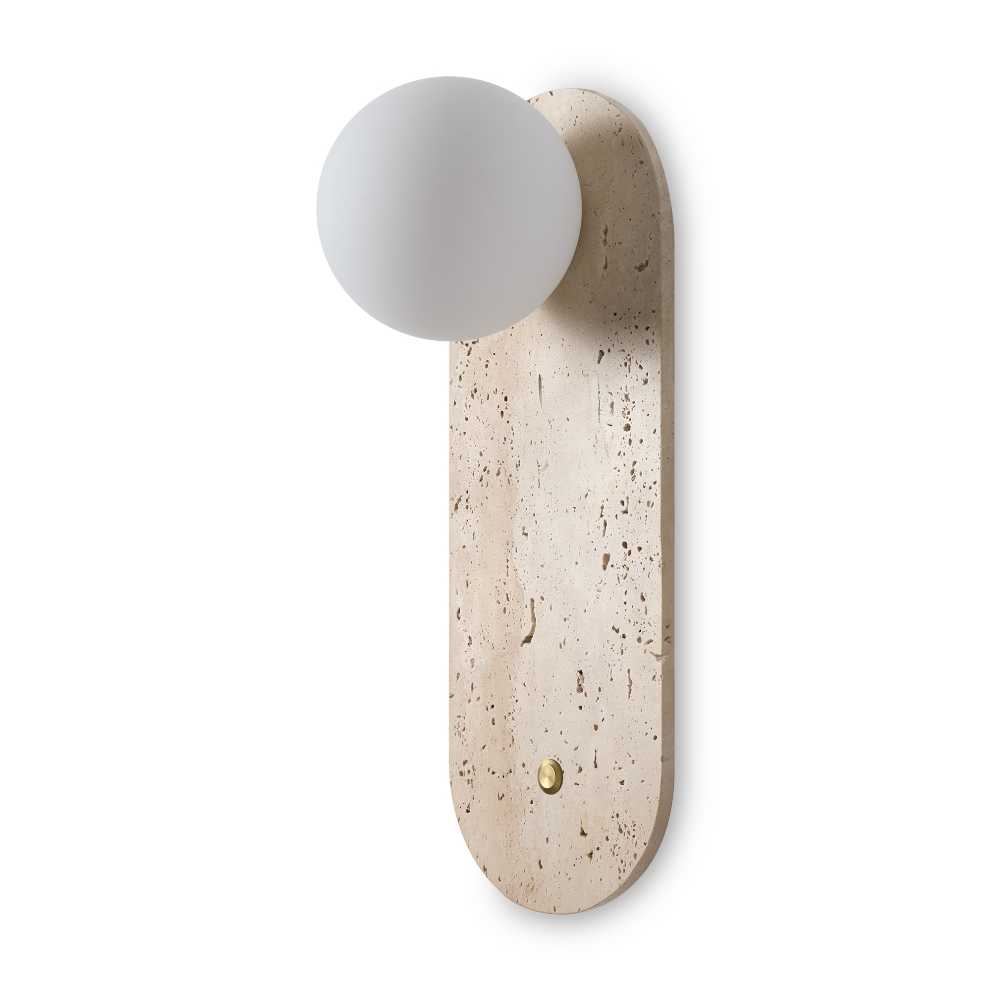 Серия Sunspot использует камень травертин как основной декоративный элемент. Настенные бра в двух вариантах: с матовым белым стеклянным плафоном и со «скользящим» теплым светом. Отличительная черта бра: увеличенный размер плафона и сенсорное включение/выключение без диммирования. Подвесные светильники имеют прозрачные стеклянные плафоны с декоративными шариками из камня травертин. Sunspot включают три модели подвесов разных размеров и форм стеклянной окантовки на плафон. Арматура — металл латунного и черного цвета Источники света LED 3000K и цоколь G9. Настольная лампа с touch переключателем . Серия создает комплексное зональное и акцентное освещение, подходящее для создания уютной атмосферы.