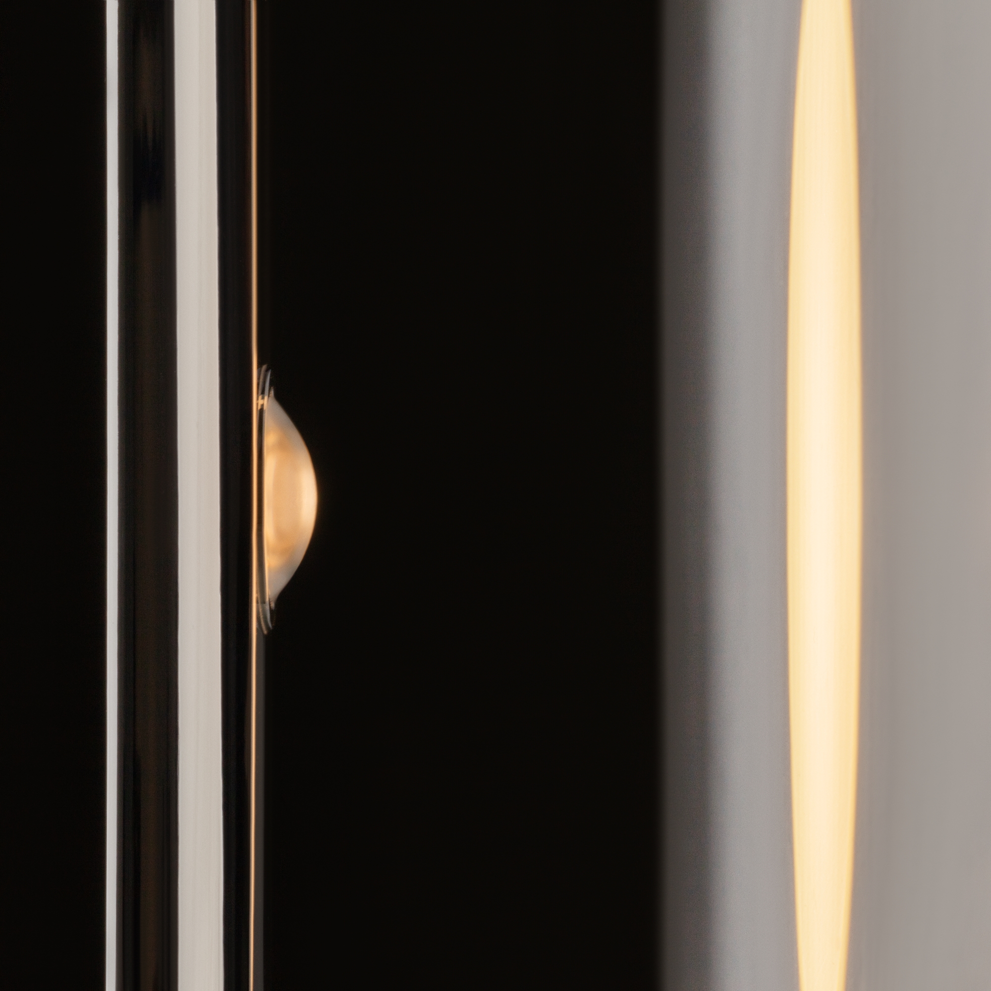 Металлическая арматура, цвета: черный, хром, золото. Источник света: LED-светодиод. Световая температура 3000К. Свет переотраженный, угол рассеивания 100 градусов. Дизайнерское решение с использованием линзы, создающей акцентный круг на стене и эффекта переотражения. Поверхность арматуры глянцевая, полузеркальная. Бра подойдет для зонирования помещений.