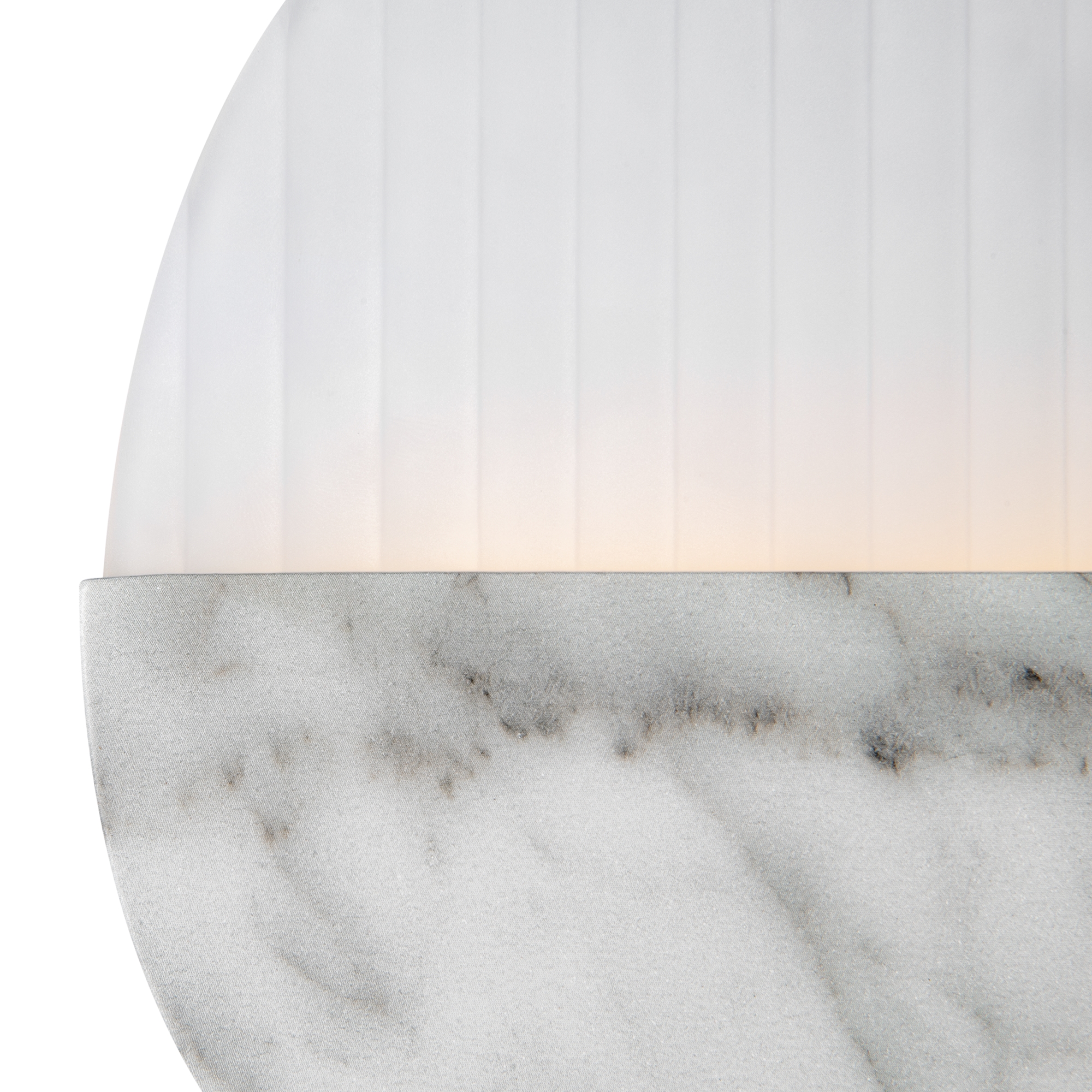 Матовая металлическая арматура, оттенки – латунь, мрамор. Рассеиватель двух видов: рифленое стекло и белый матовый акрил. Источник света — светодиодная лента, температура 3000К.