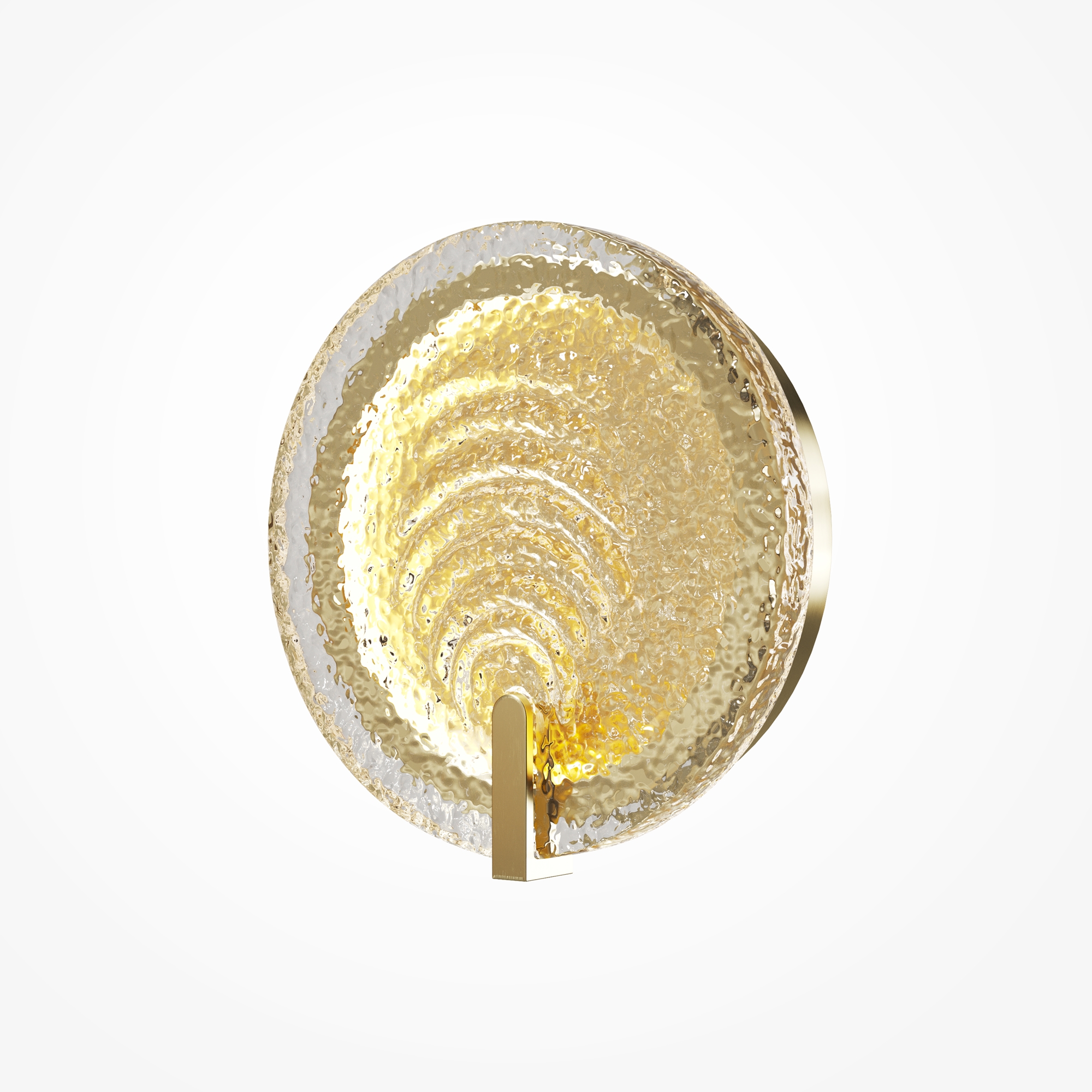 Дизайн серии передаёт застывшее движение судна по воде. Металлическая арматура в цвете сатинированной латуни. Рельефное прозрачное литое стекло. В серии модели двух размеров, которые можно устанавливать как вертикально, так и горизонтально для создания композиций. Отступ от стены всего 62 мм. Шестигранники в качестве крепежей обеспечивают лаконичный вид без визуального шума. LED-источник (3000К) скрыт матовым рассеивателем. Бра органично впишутся в прихожие, гостиные, спальни или коридоры.
