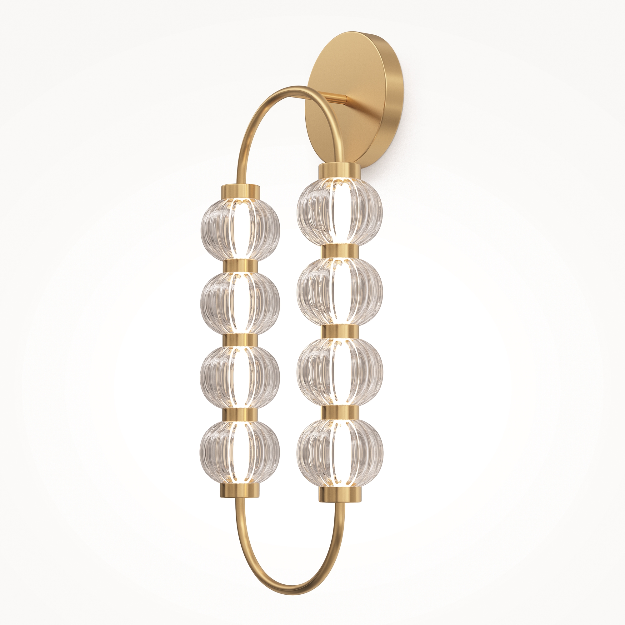 Арматура из металла, цвет – хром. Акцентный декор в виде рельефных сфер из литого стекла. Источник света – светодиодная лента – скрыта под акриловым рассеивателем. Регулируемая высота подвесных светильников.
