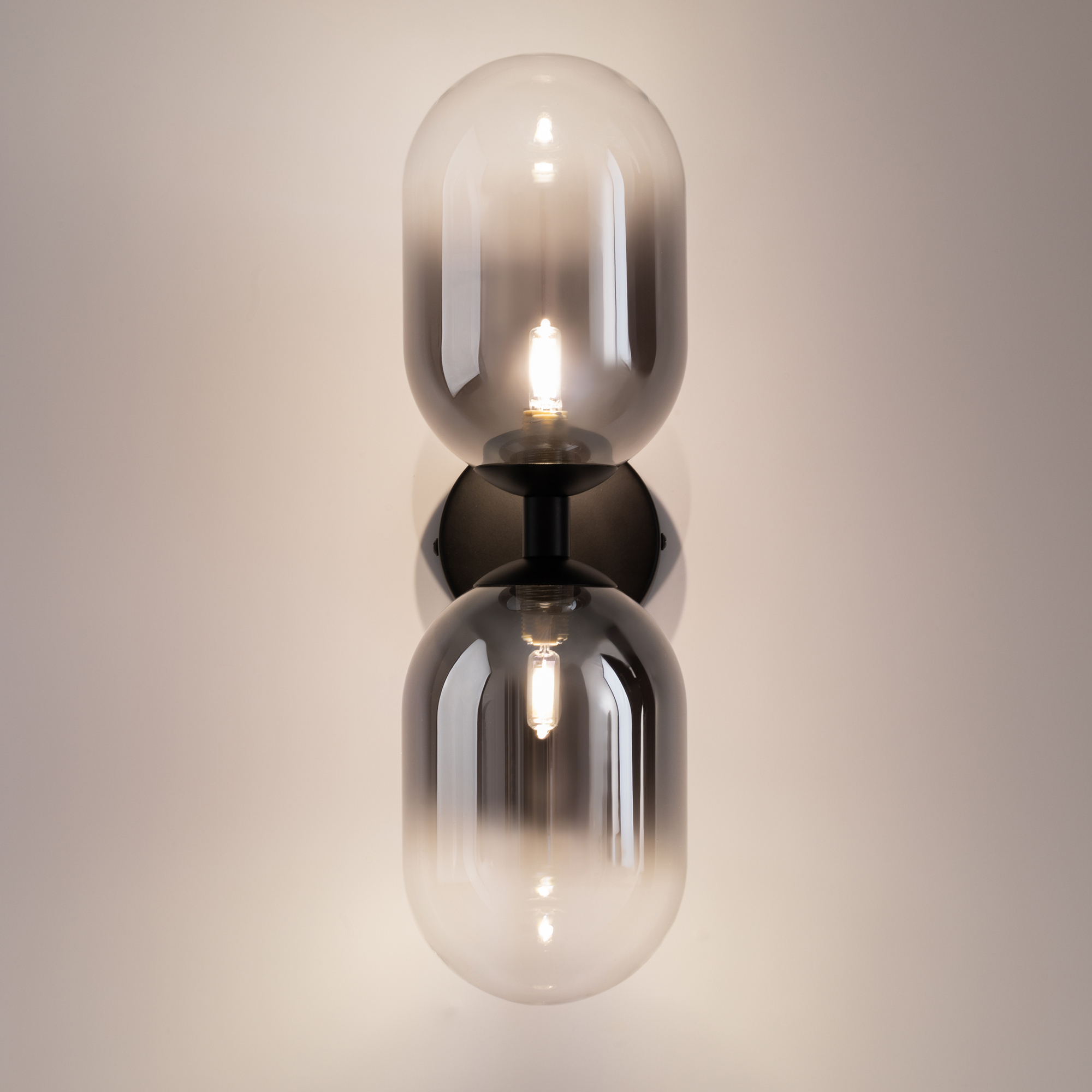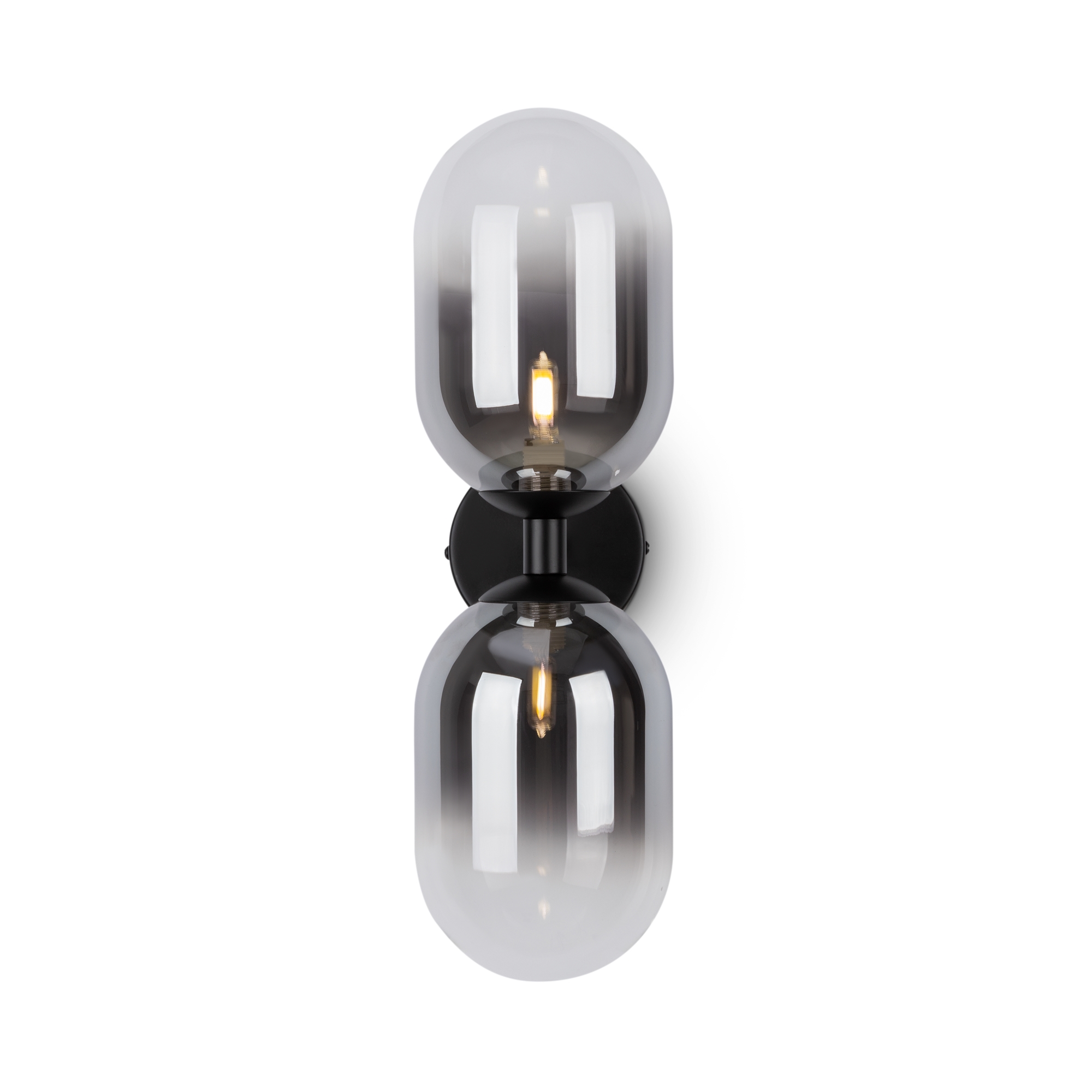 Арматура из металла матового черного цвета. Плафон из стекла с окрасом растяжка. Цвет дымчатый. Модификация — настенные, потолочные и настольные светильники. Источник света — лампа. Цоколь G9.
