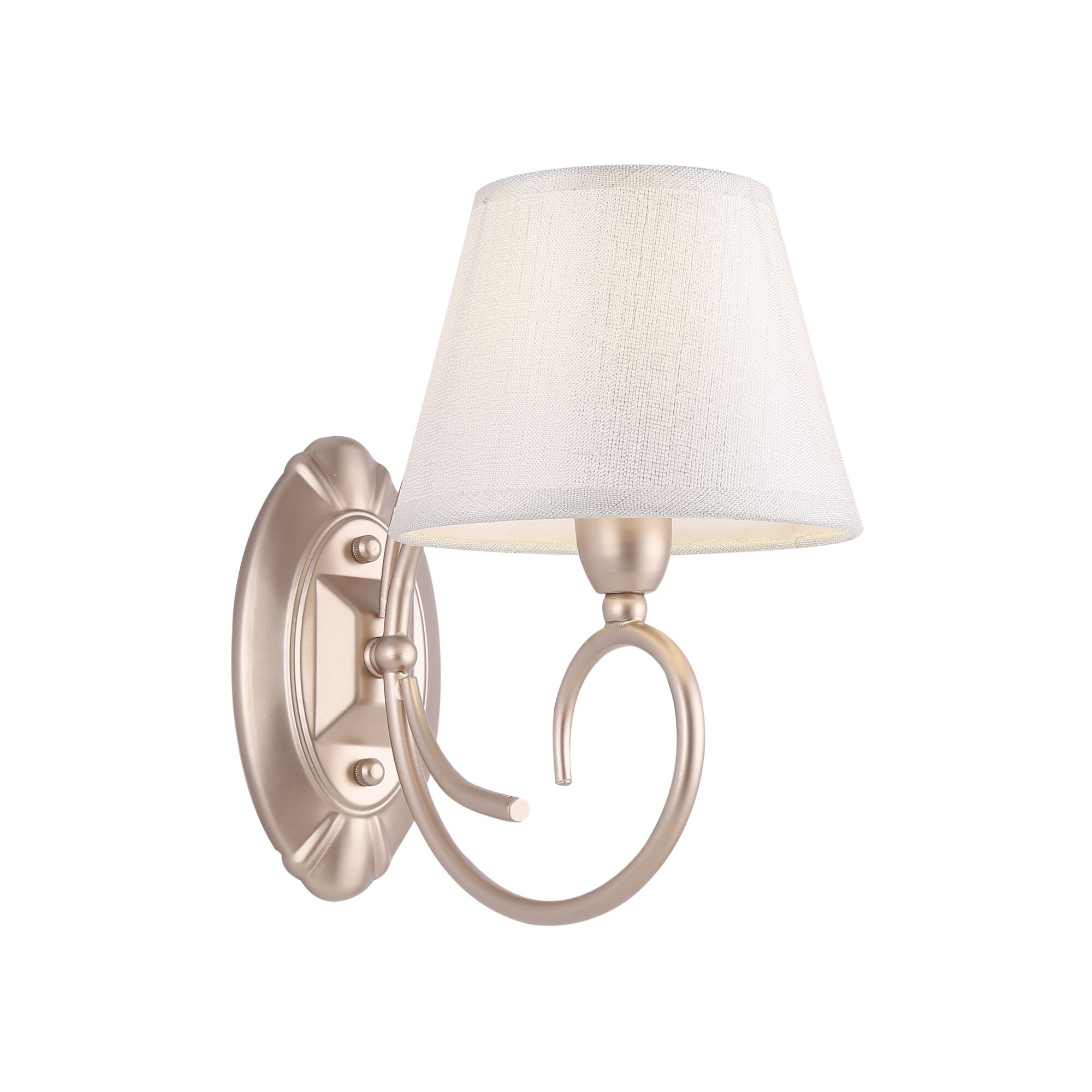 Материал арматуры – металл. Цвет – матовое золото. Текстильные абажуры кремового оттенка. Декоративная подвеска из янтарного стекла. Источник света – лампа с цоколем E14.
