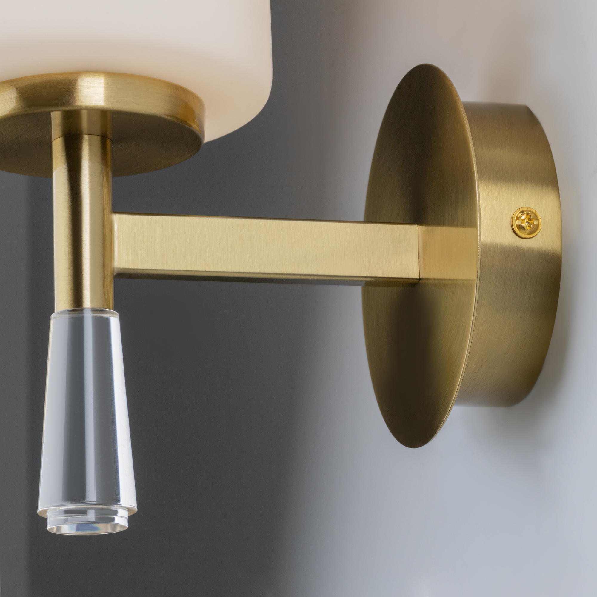 Металлическая арматура: латунь или никель (новинка серии).Белые стеклянные плафоны цилиндрической формы, направленные вверх.. Хрустальное основание с акриловыми каплями. Лампа E27.