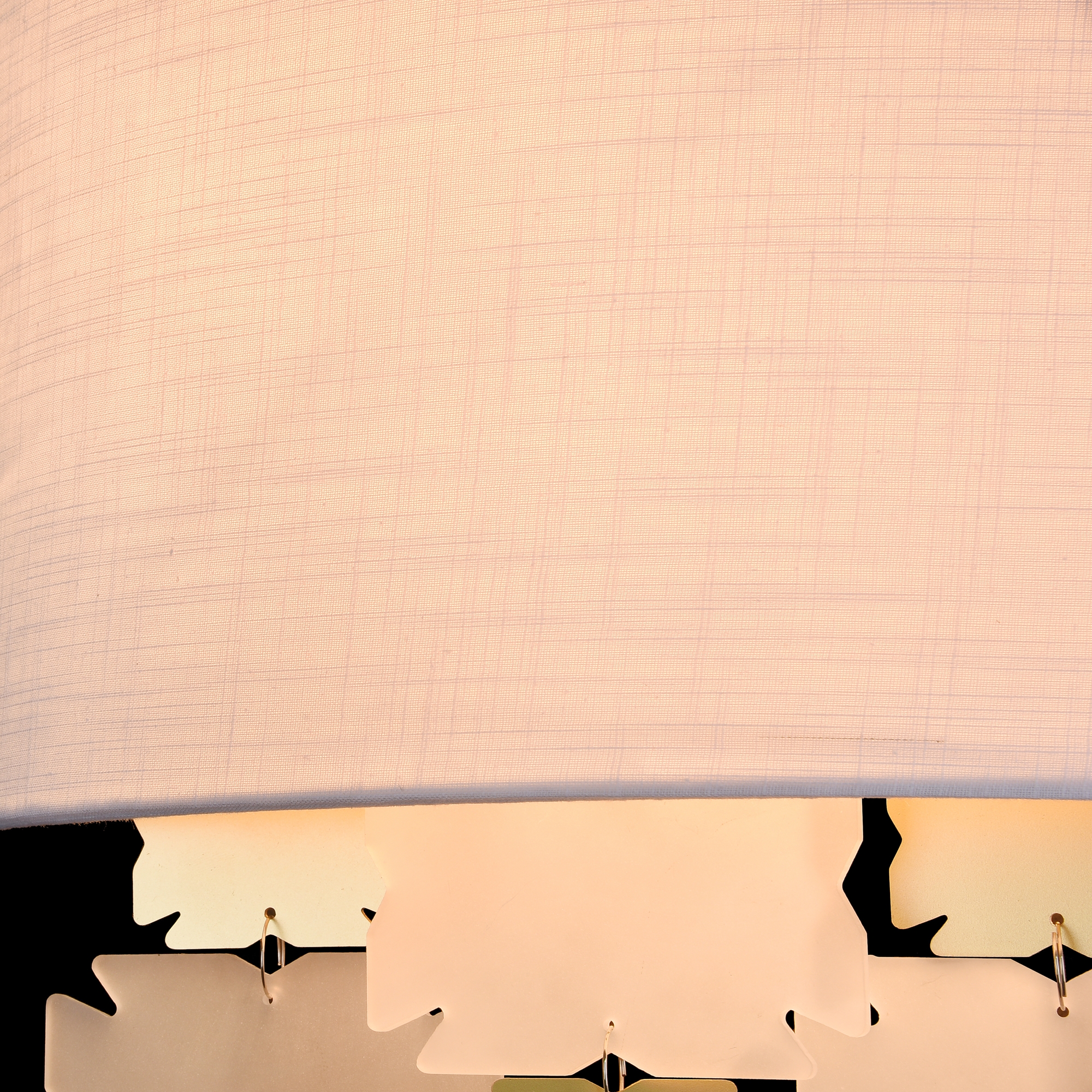 Каркас из металла. Декоративные элементы в основании из металла. Абажур из ПВХ покрыт тканью.