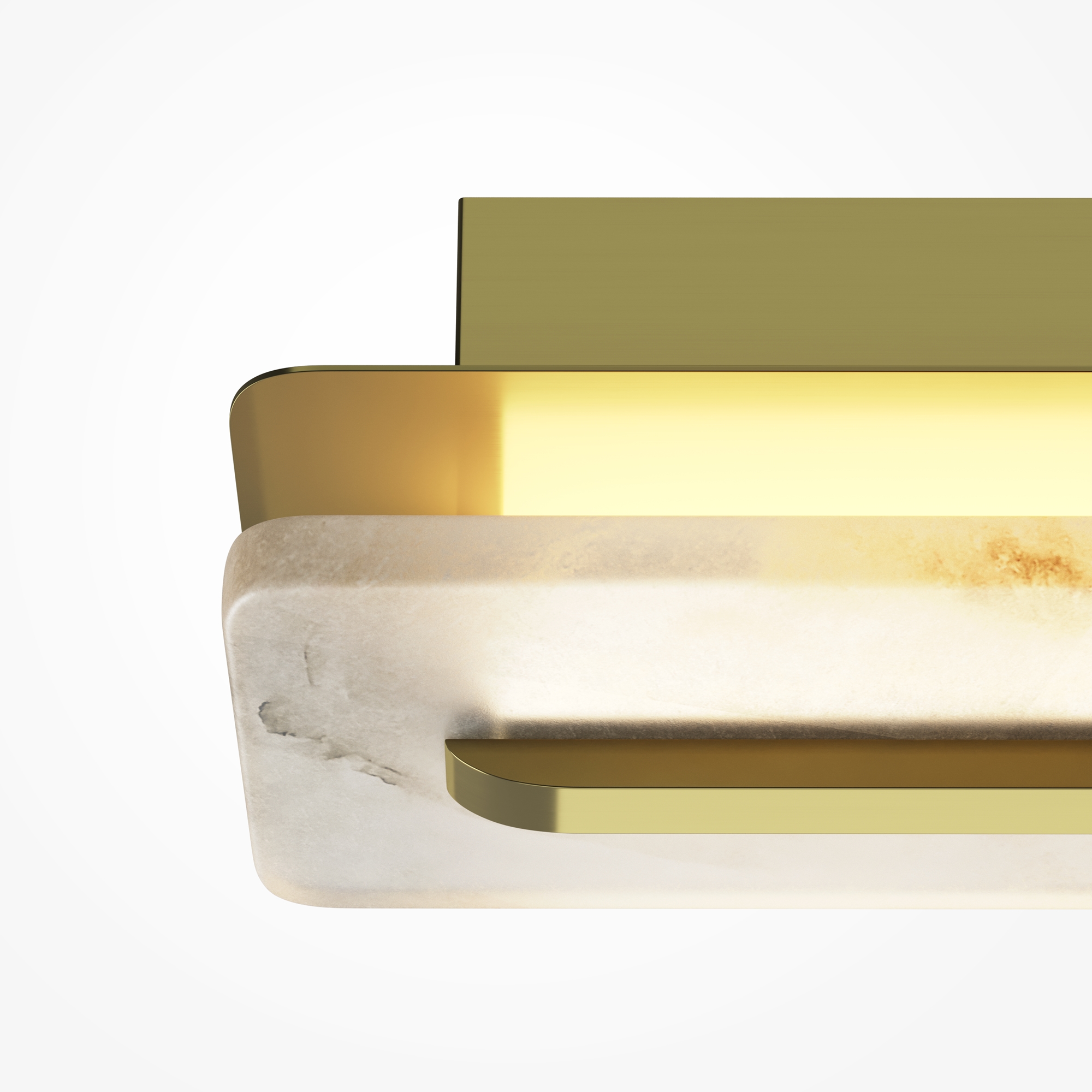Настенные светильники с рассеивателем из алебастра. Цвет арматуры — латунь. Материал арматуры — металл. LED-источник света. Цветовая температура 3000К. Три размера: 400, 600, 800 мм. Возможность создания композиций и установки горизонтально или вертикально. Мягкий переотраженный свет. Основание из металла цвета сатинированной латуни. Модульный дизайн для создания световых инсталляций.