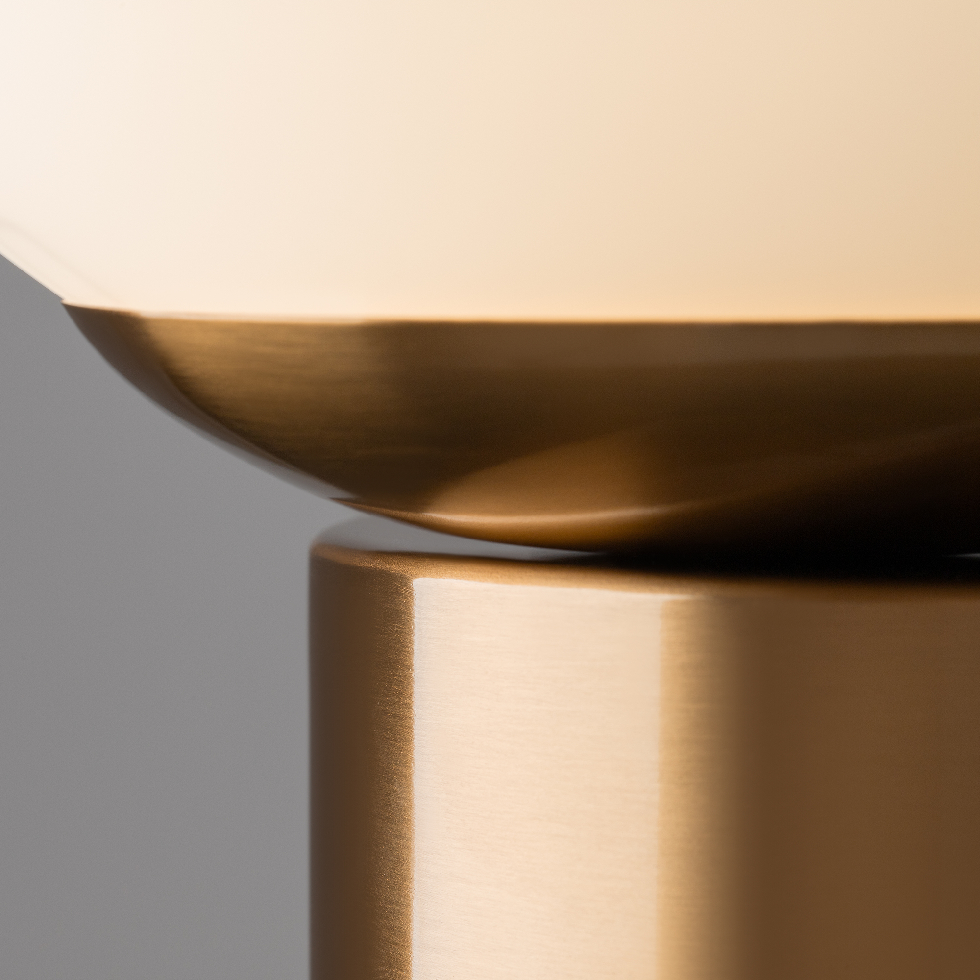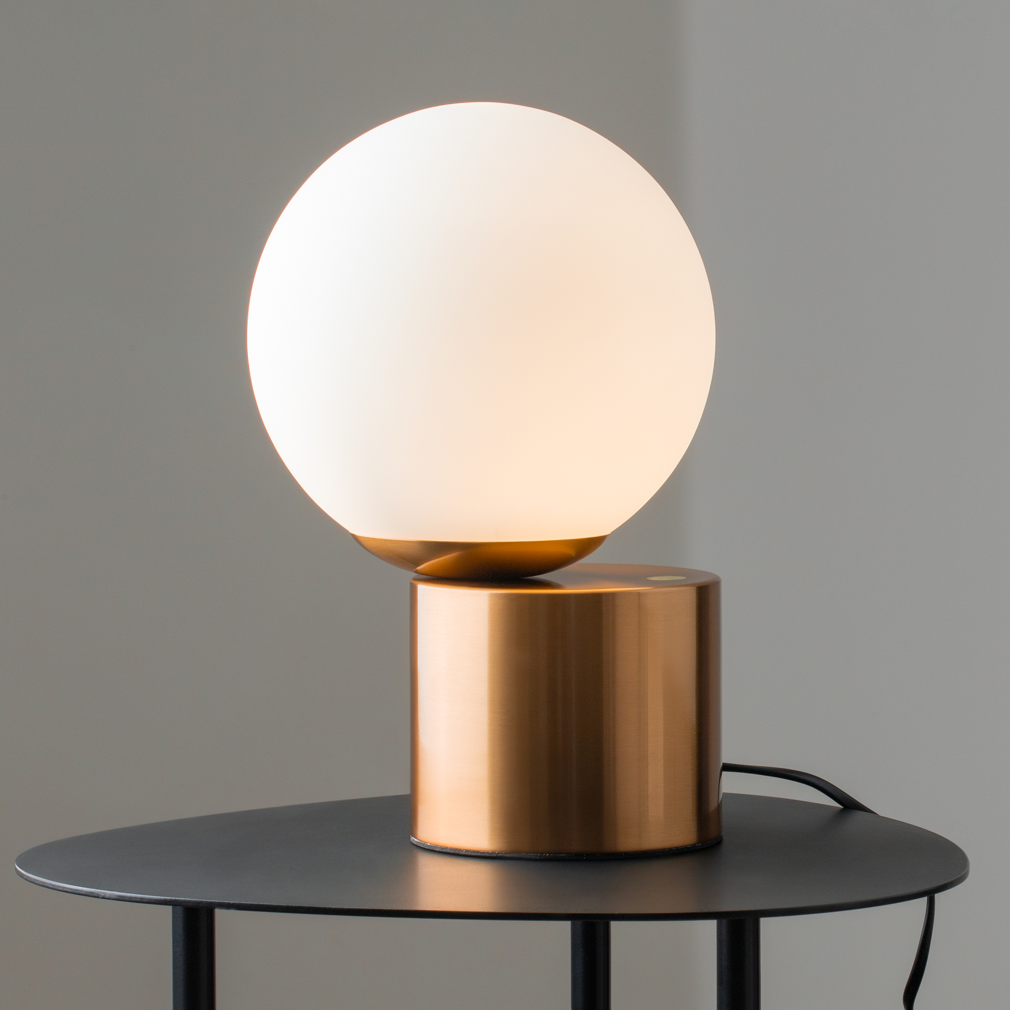 Материал арматуры — металл, цвет — латунь. Шаровидный пафон, рассеянный свет. Функция Touch позволяет включать и выключать свет. Источник света — лампа с цоколем Е14.
