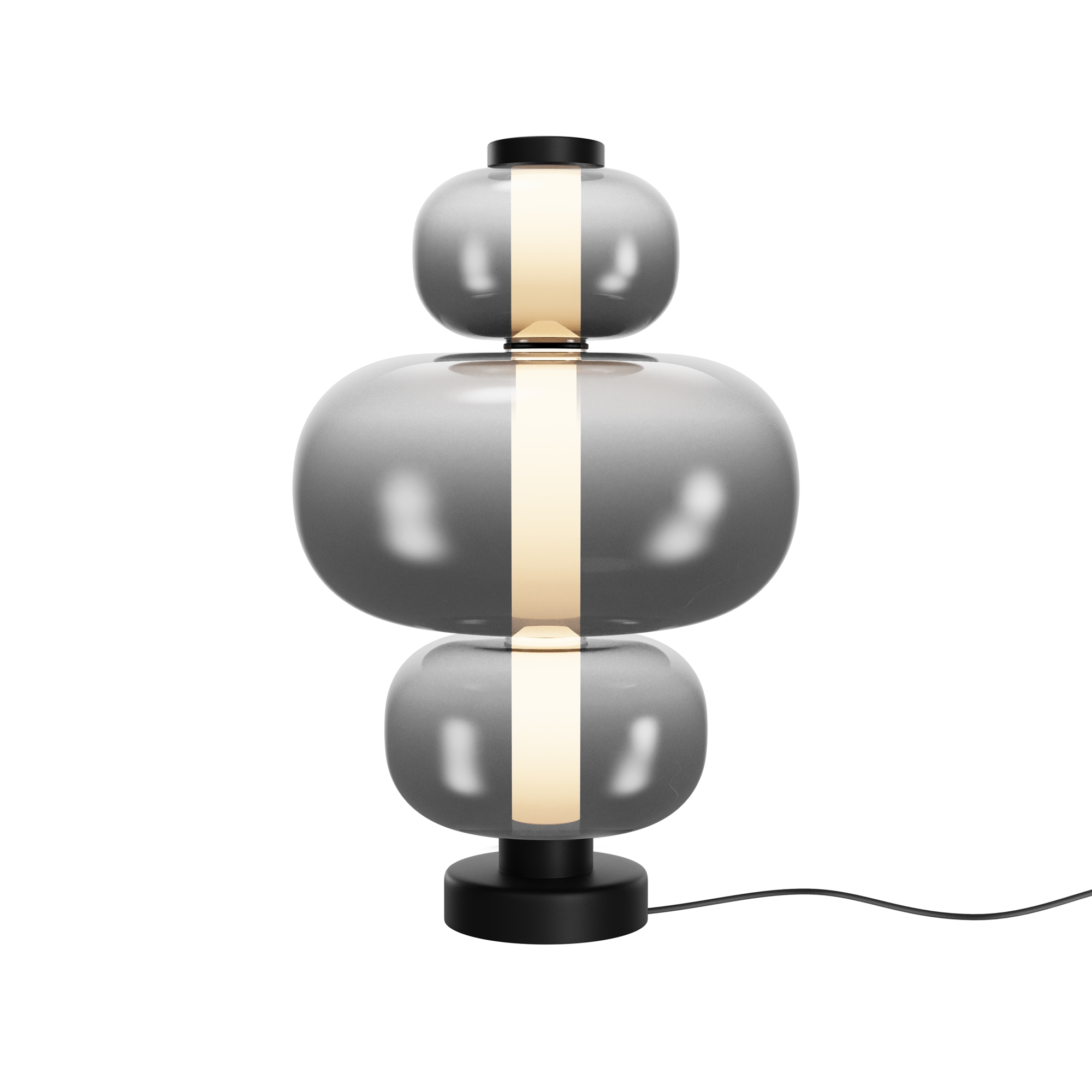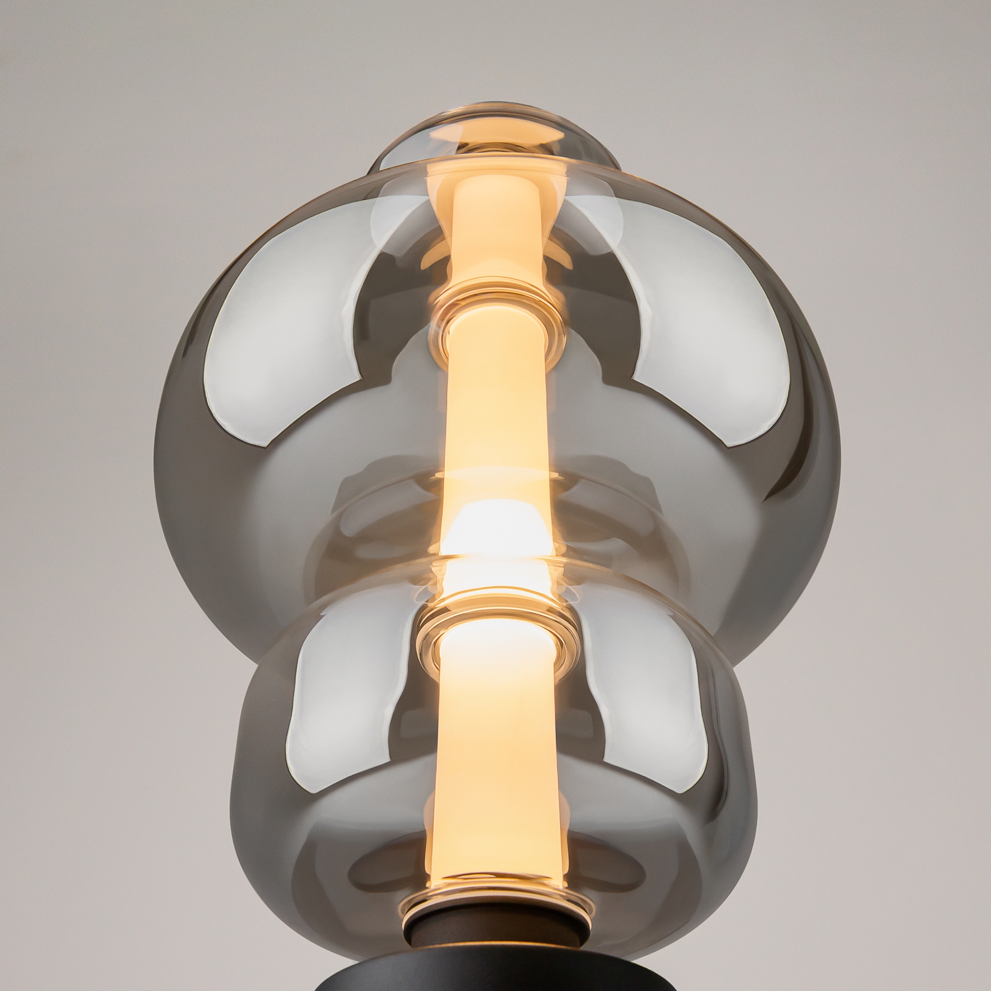 Арматура — металл, цвет — белый, черный. Плафоны окрашены в дымчатый или белый полупрозрачные цвета. В плафон установлен LED-источник света с мощным световым потоком. Цветовая температура — 3000К, угол рассеивания — 120 градусов. Внутренний рассеиватель из полупрозрачного акрила создает мягкое свечение. Предусмотрена функция диммирования: touch-переключатель обеспечивает плавное бесступенчатое управление.