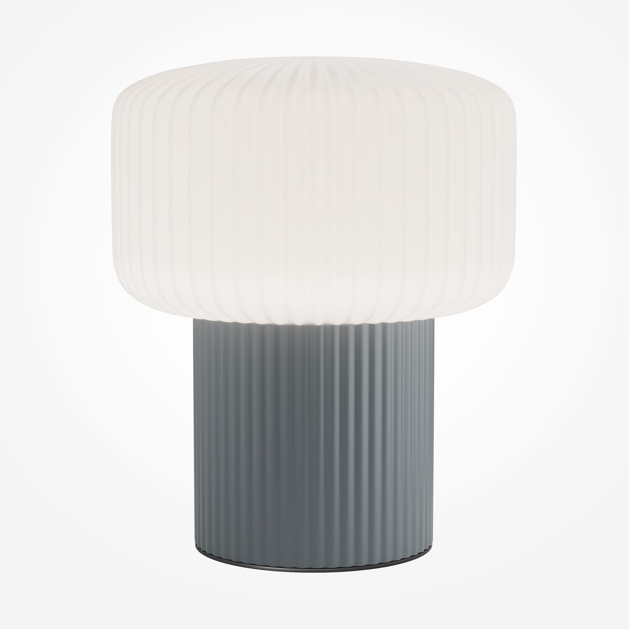 В дизайне серии объединены тренды на рельефность и форму «грибочка». Основание украшено вертикальным рельефом. Сочетание текстур белого стеклянного плафона и керамического основания. В серии два пастельных оттенка: кремово-белый (RAL 9001) или серебристо-серый (RAL 7001). Цоколь сменного источника настольных ламп — G9. LED-источник у портативного светильника. Трендовые дизайн и цветовая палитра делают идеальным дополнением для любого пространства — гостиная, рабочий стол или прикроватная тумбочка.