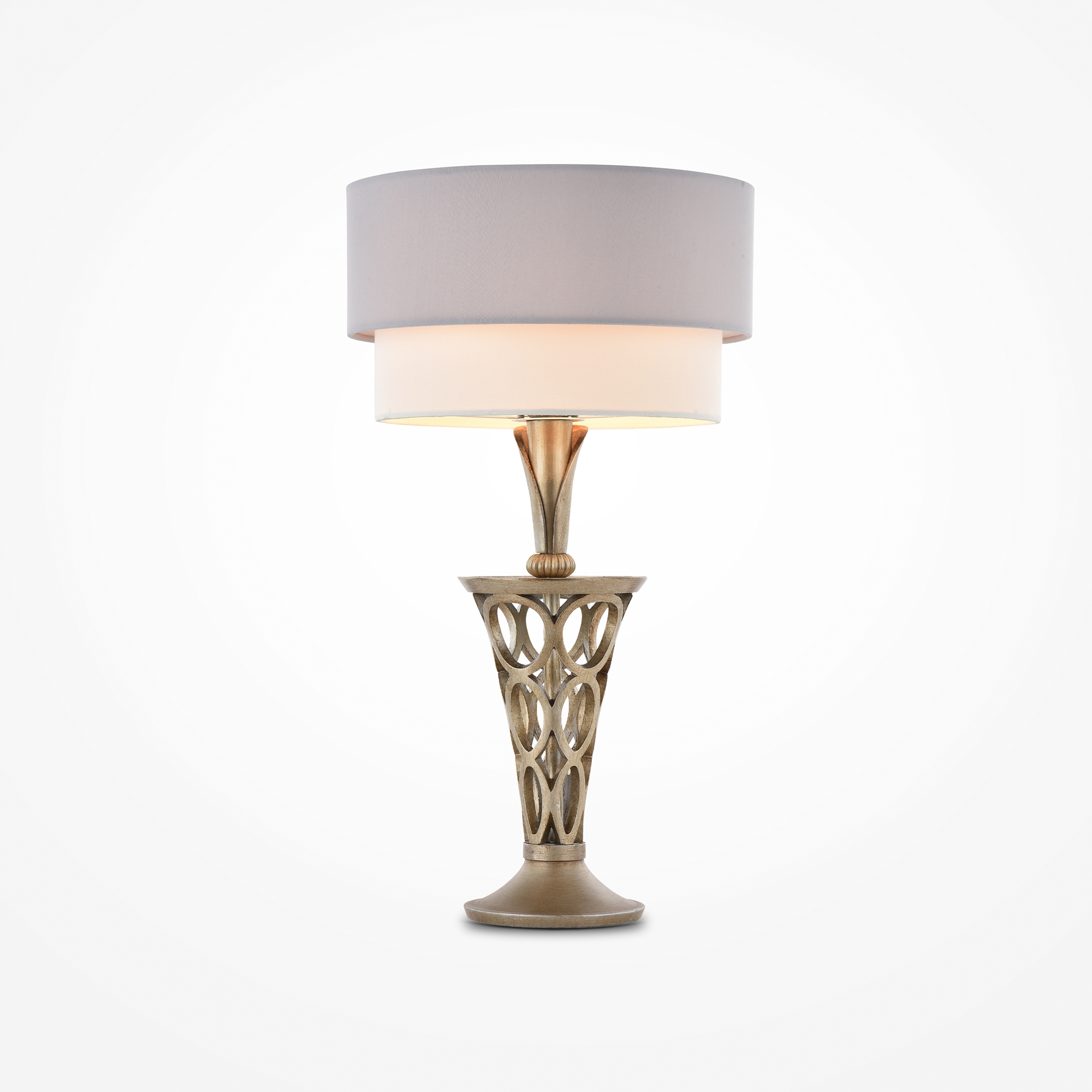 Металлическая арматура окрашена в цвет античного серебра. Двойные абажуры из хлопка на ПВХ, комбинация белого и серого цвета. Флористический декор. Высота люстр регулируетс