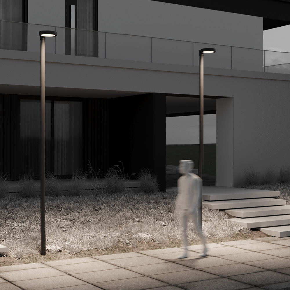 Прочный алюминиевый корпус темно-графитового цвета. Предназначен для уличного использования в парках, скверах, на площадках для отдыха. Минималистичный плафон круглой формы. Высота столба 4 м (в комплект не входит). LED-источник света. Цветовая температура 3000К. Максимальная защита от пыли и влаги IP65. Мощность 50 Вт.