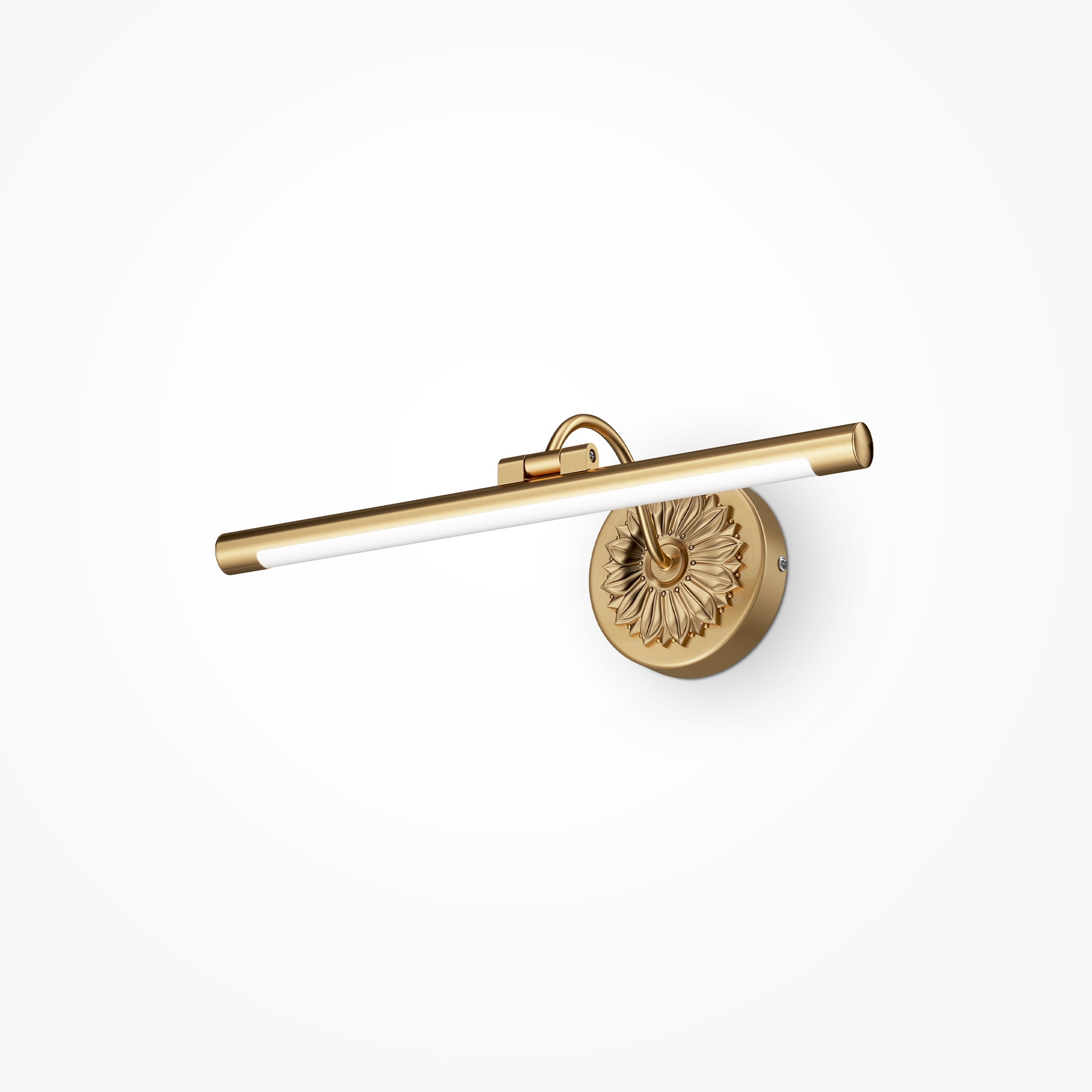 Металлический корпус окрашен в трендовый медный цвет. LED-источники скрыты под прочным пластиком, что обеспечивает мягкий, комфортный для зрения световой поток. Дизайн модели воссоздает актуальный для середины прошлого столетия образ светящейся трубки. Материал плафона – стекло.