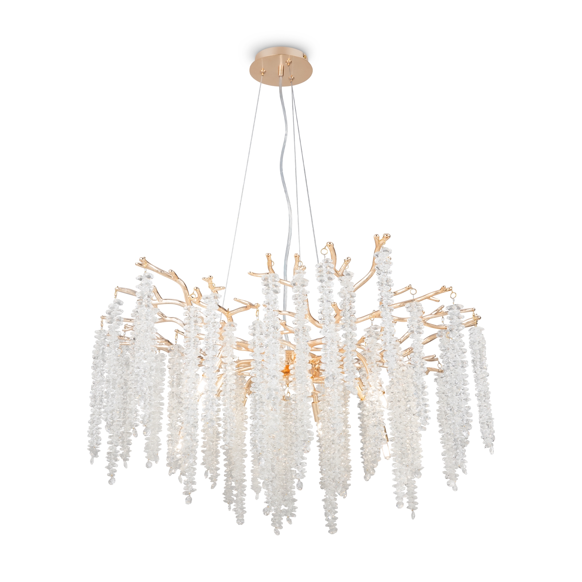 Материалы арматуры —металл, цвет — золото. Хрустальные декоративные элементы напоминают капельки — создают глубокие переливы света. Дизайн в трендовой растительной тематике. Источник света — лампа с цоколем G9 и с поворотной функцией.