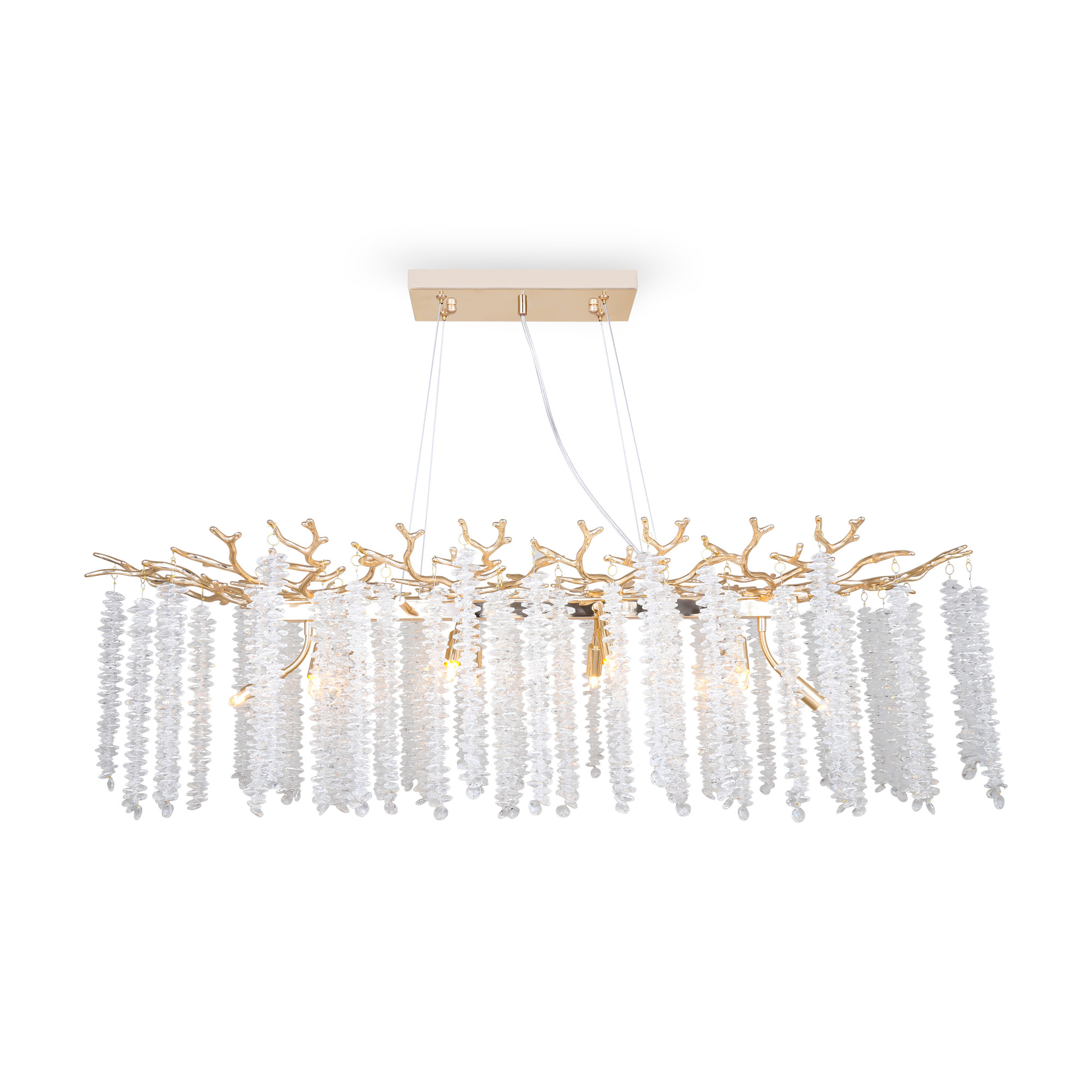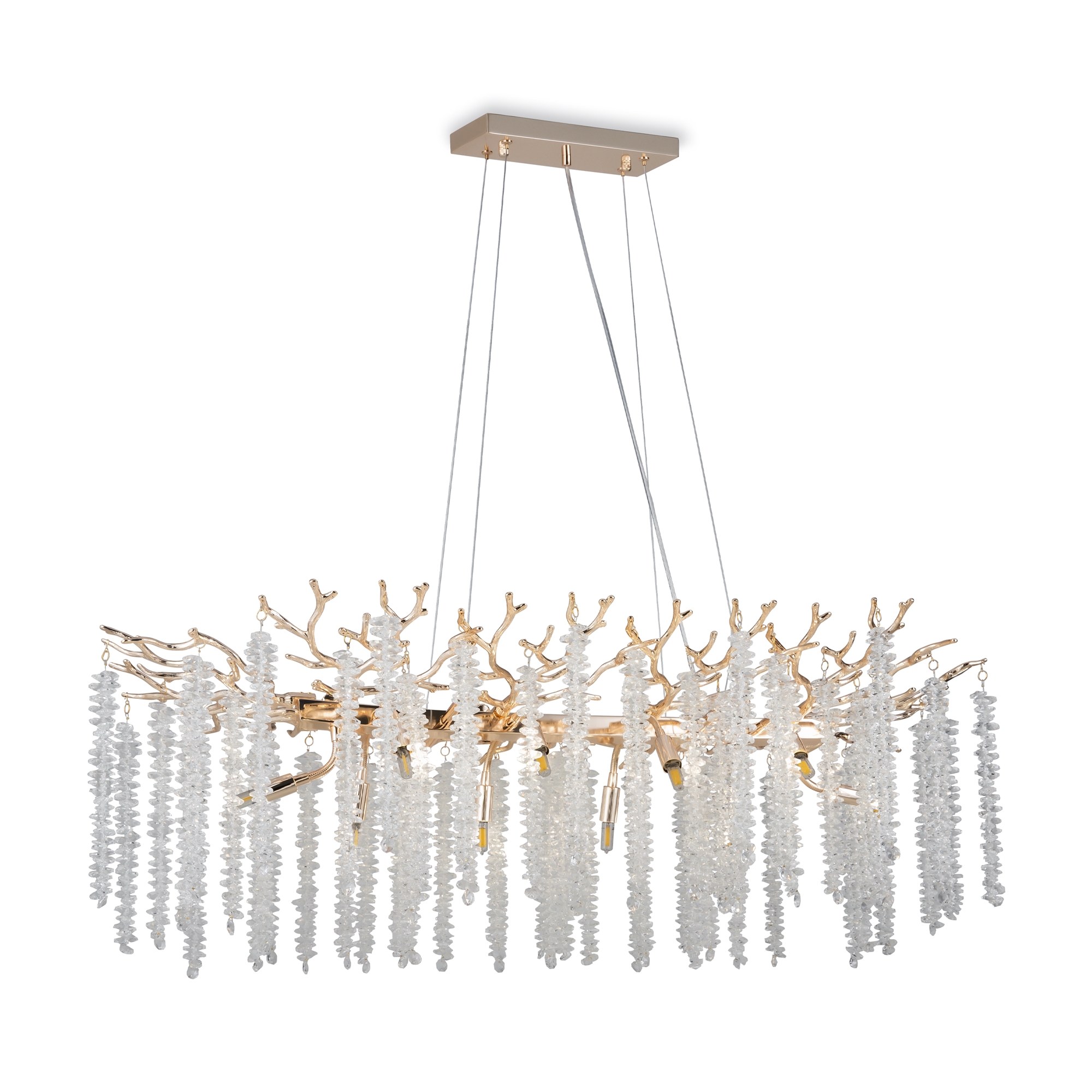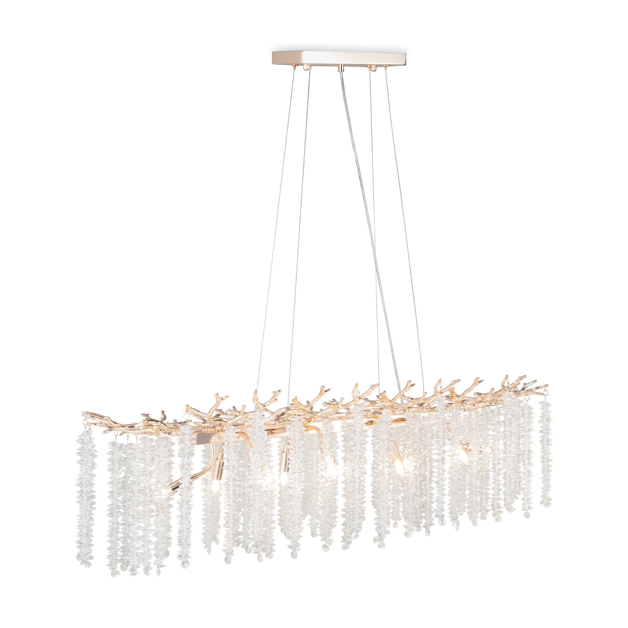 Материалы арматуры —металл, цвет — золото. Хрустальные декоративные элементы напоминают капельки — создают глубокие переливы света. Дизайн в трендовой растительной тематике. Источник света — лампа с цоколем G9 и с поворотной функцией.