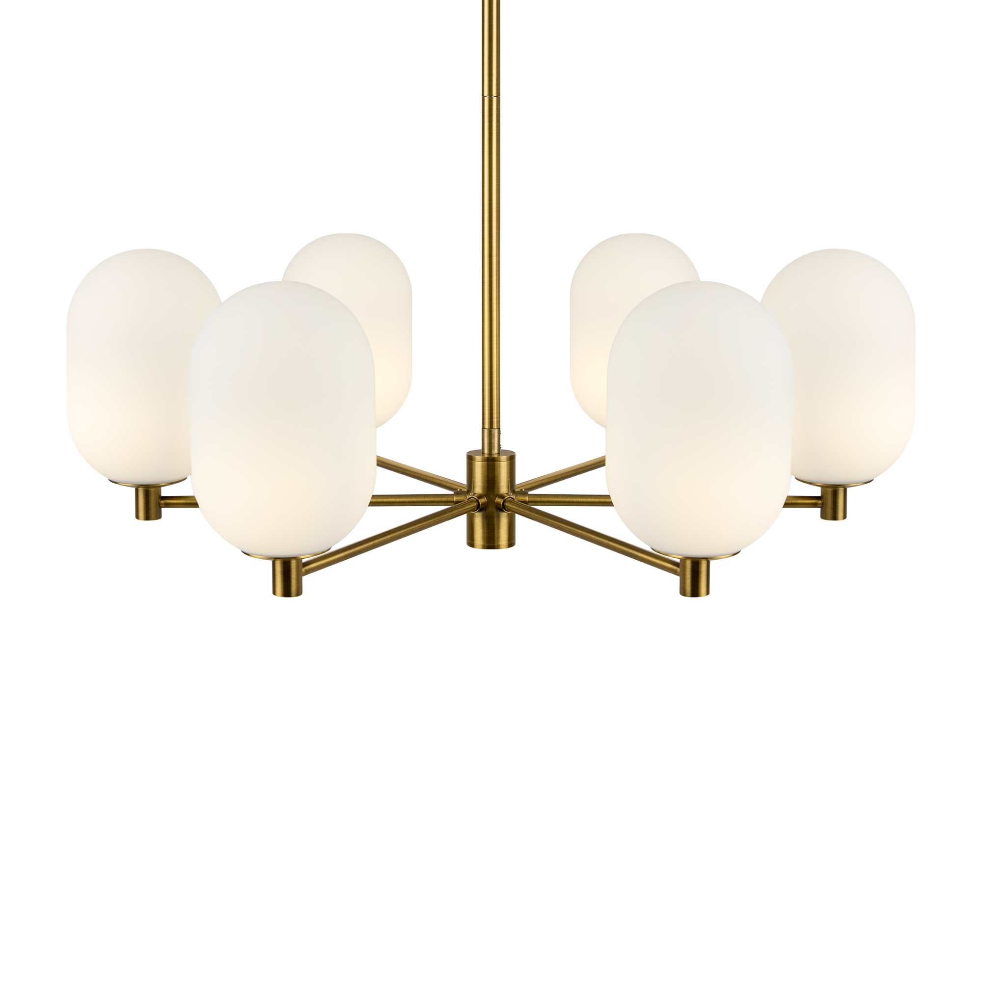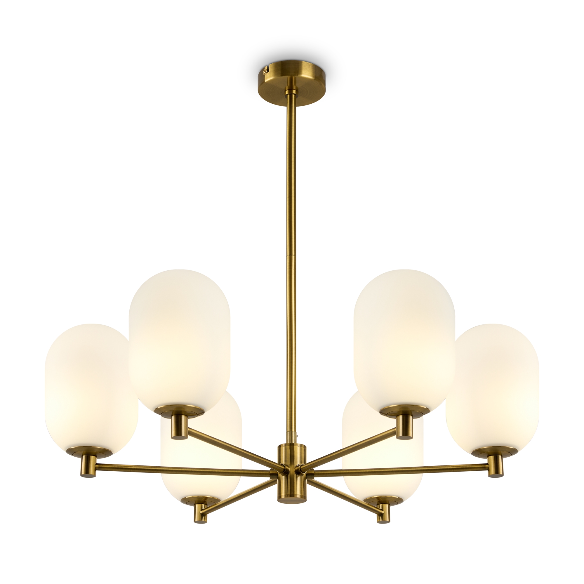 Арматура из металла цвета латуни. Плафоны овальной формы из белого матового стекла. Форма плафонов дает рассеянный свет, максимальная пропускная способность. Источник света лампа. Цоколь G9. Широкая линейка позволяет организовать комплексное освещение в едином стиле.