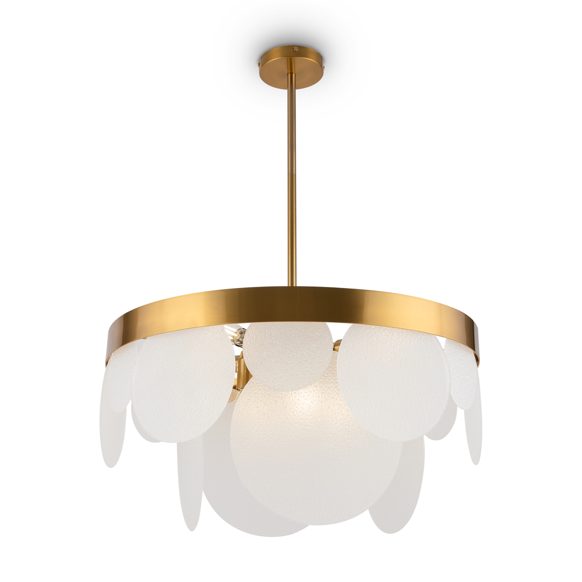 Магия фактур запечатлена в дизайне серии Porto. Изюминка модели – декор в виде тонких округлых пластин с эффектом замороженного стекла. Популярная серия имеет два цветовых решения: декор цвета рисовых полей, а также комбинация фактурного стекла и металлических пластин в цвете латунь. Арматура светильников в серии представлена в двух оттенках – латунь и никель. Тонко очерченные рожки и воздушный стеклянный декор создают трендовый эффект парения. Светильник словно замирает в воздухе, образуя своеобразную визуальную иллюзию. Модель предназначена для комнат, оформленных в стиле ар-деко, модерн, неоклассика. Серия включает люстры различного диаметра на 6 и 8 ламп.
