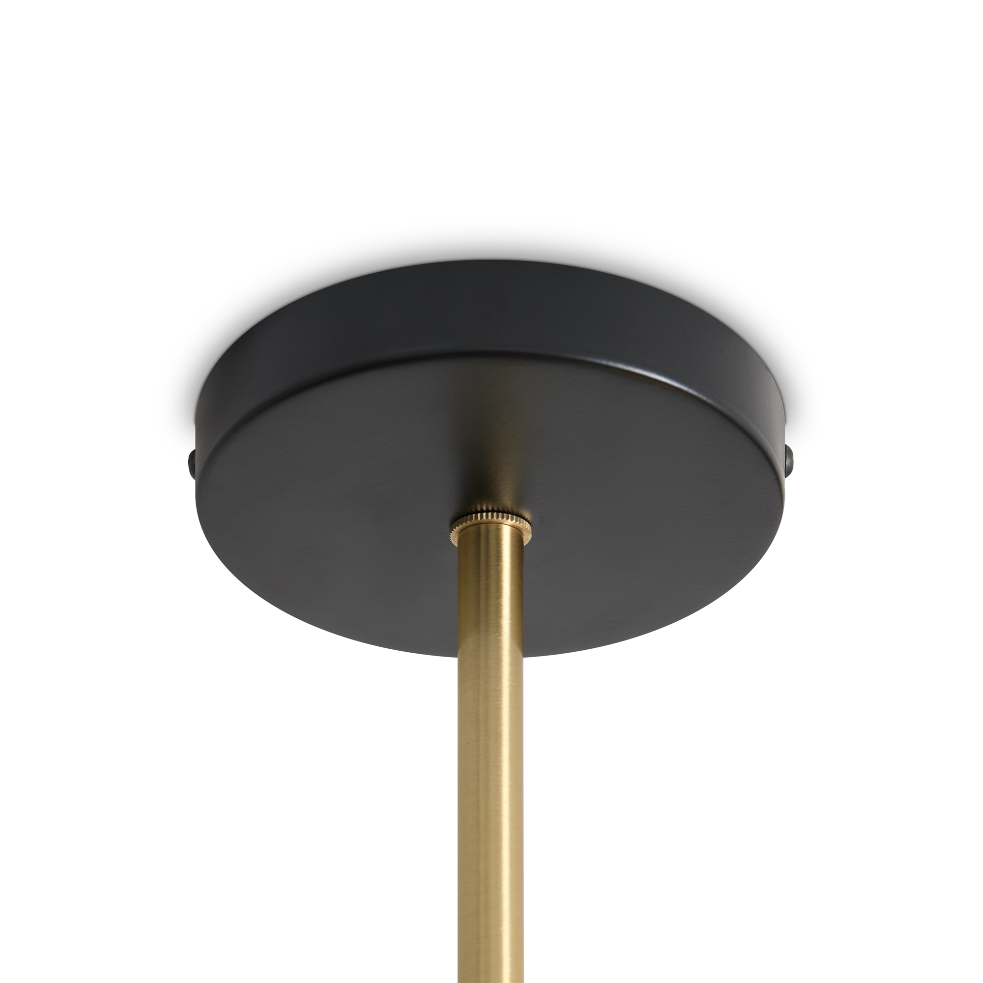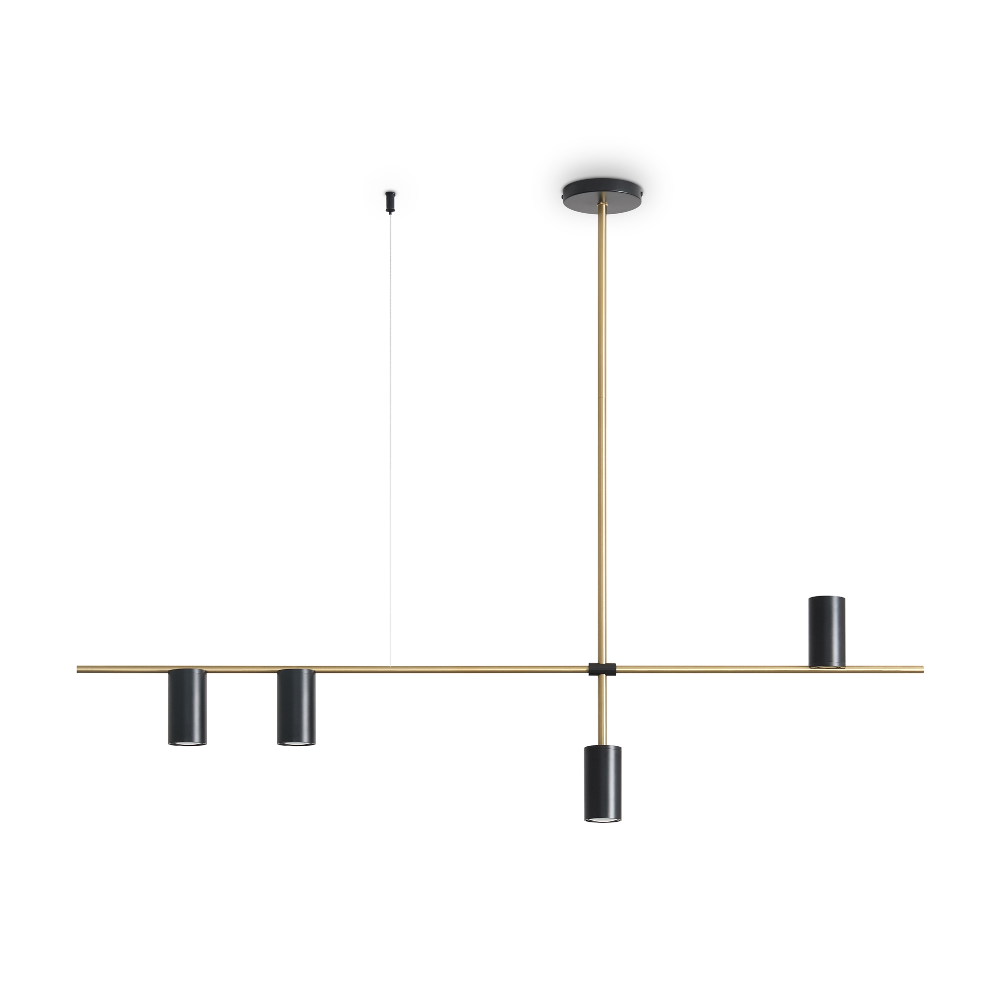 Арматура и плафоны из металла. Черный цвет дополнен латунной окантовкой. Поворотные плафоны и арматура позволяют видоизменять композицию и регулировать направление светового потока. Источник света – лампа GU10.