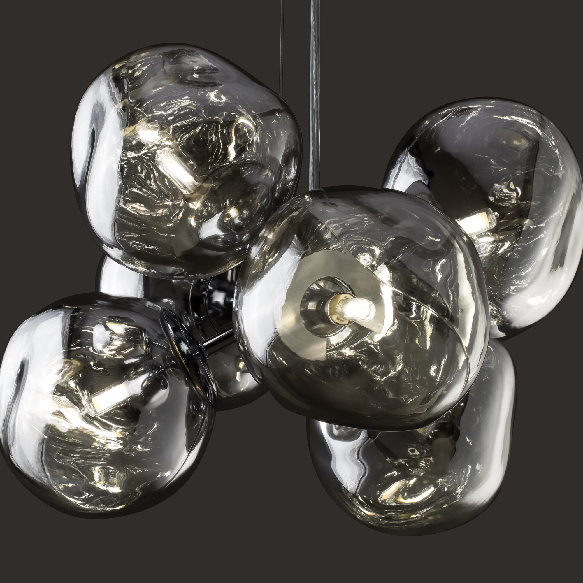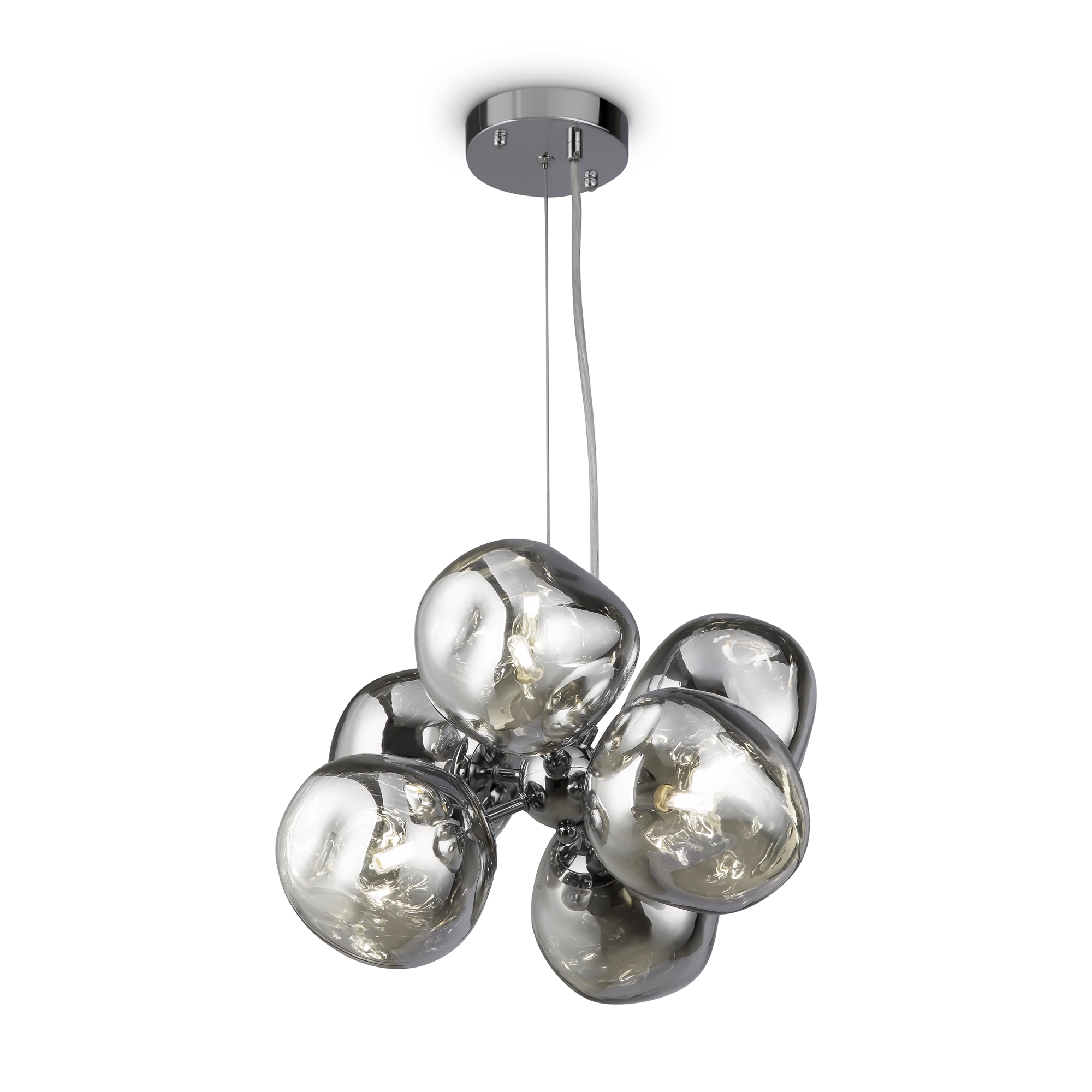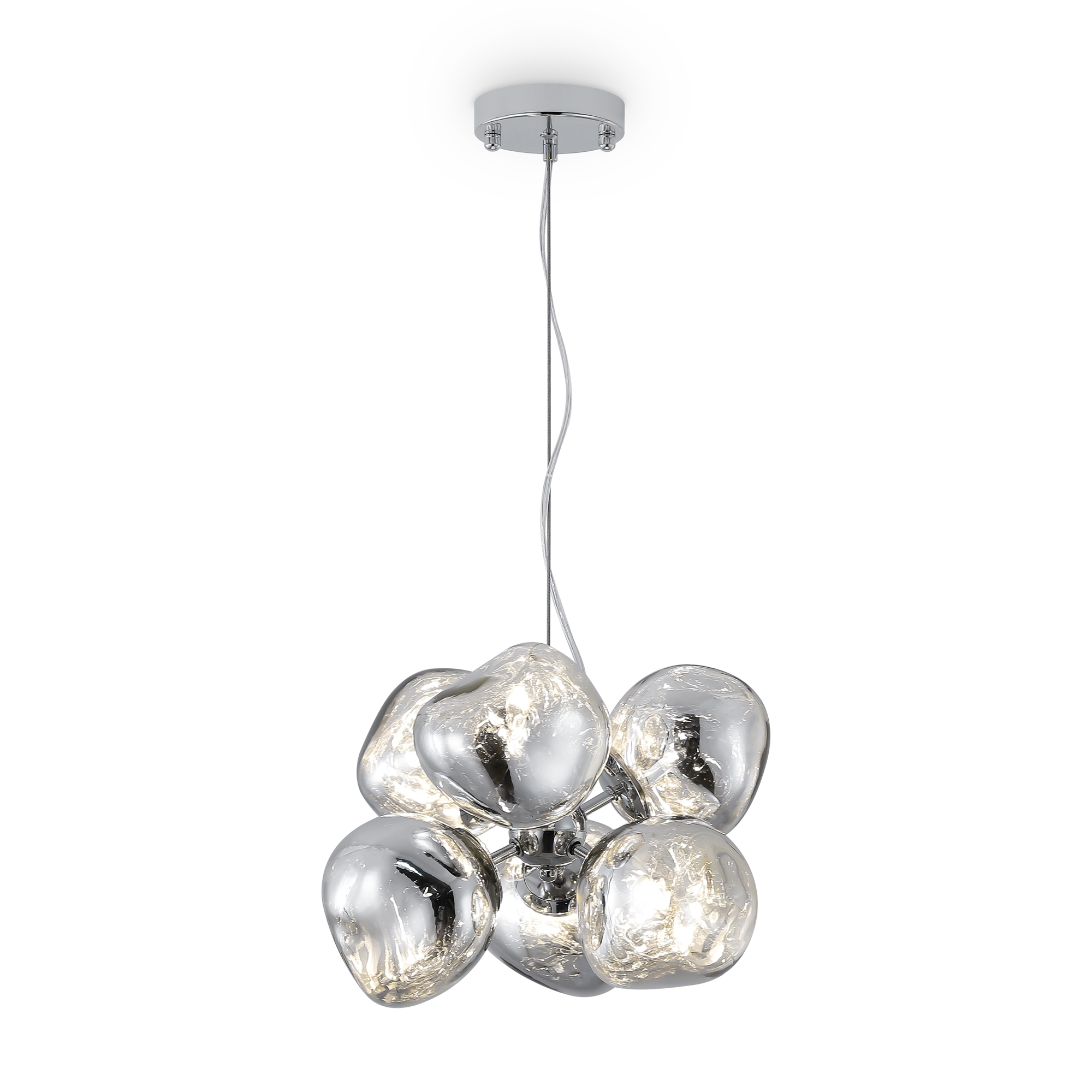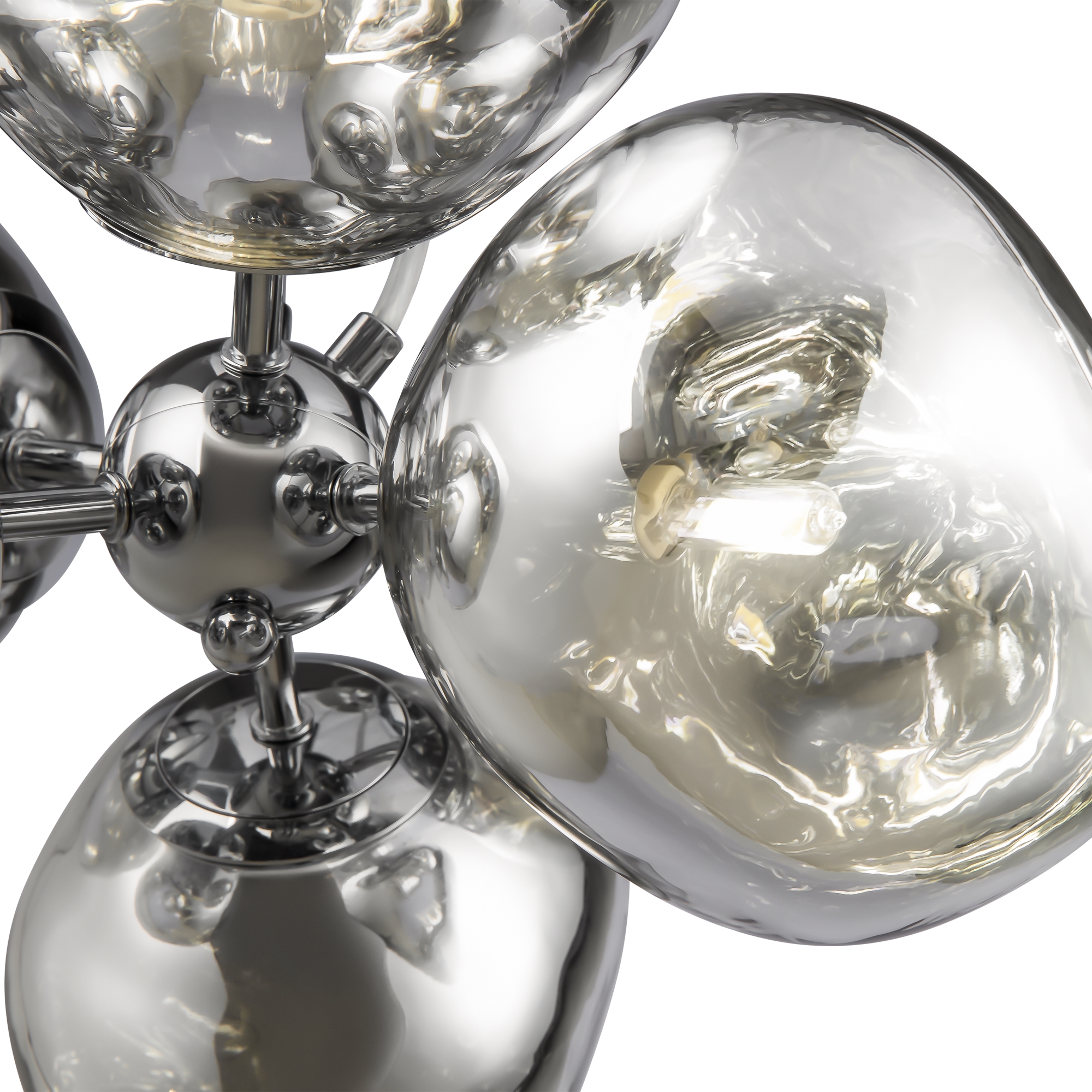 Арматура — металл, цвет — хром. Шарообразные плафоны с зеркальным эффектом и переливами. Материал — стекло с серебристым напылением. Источник света — лампа с цоколем — E27.