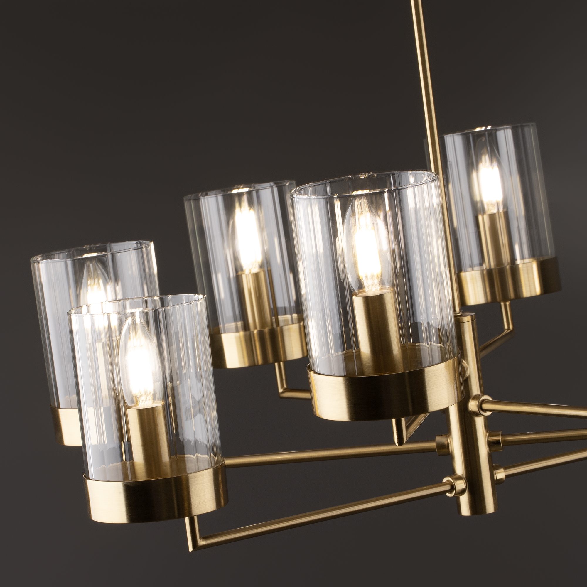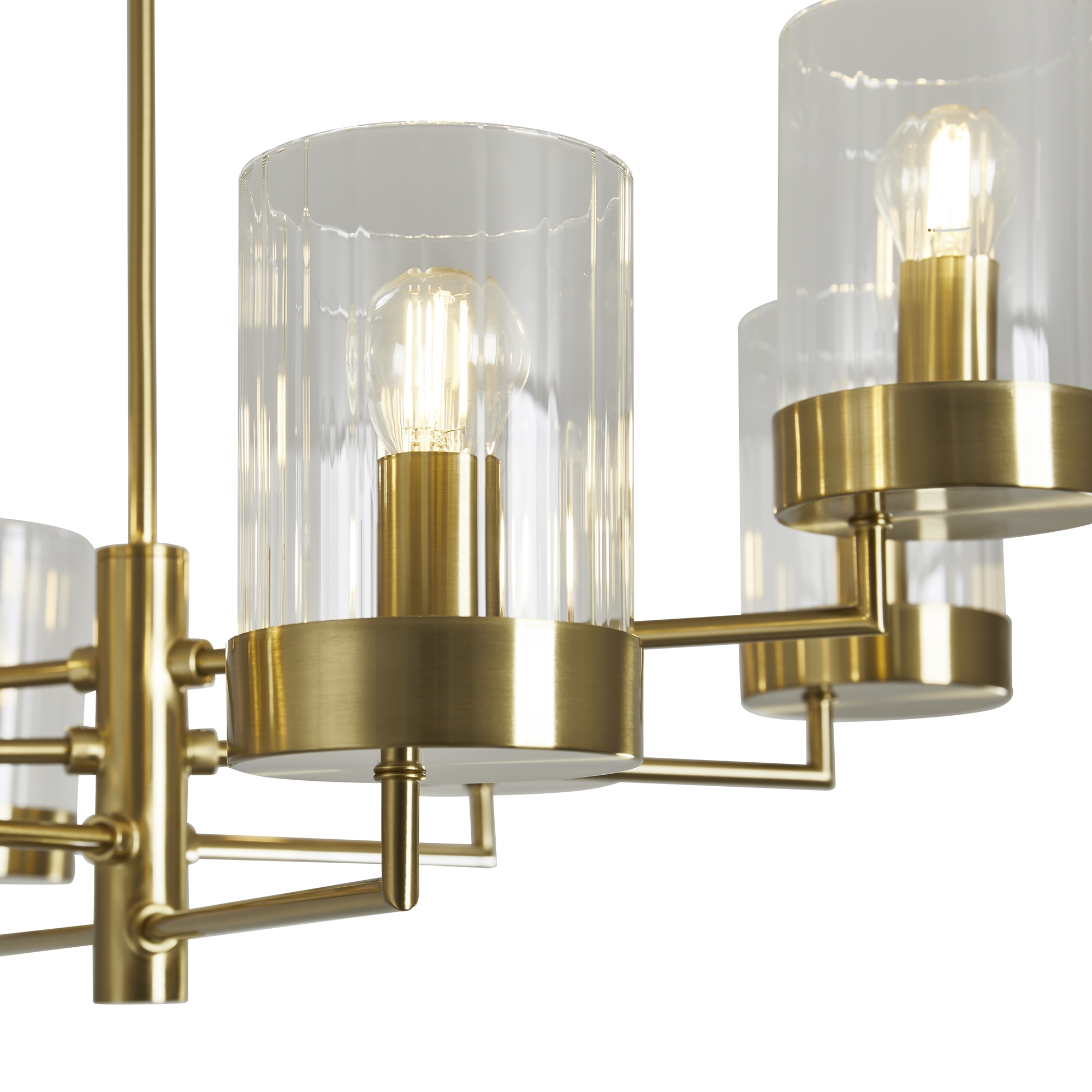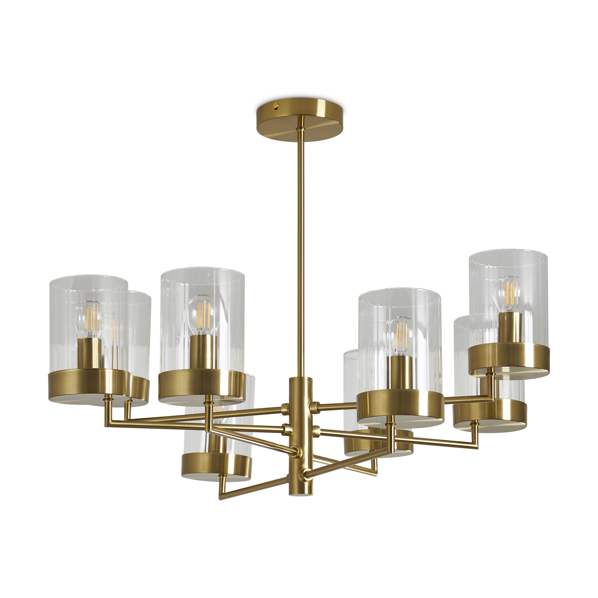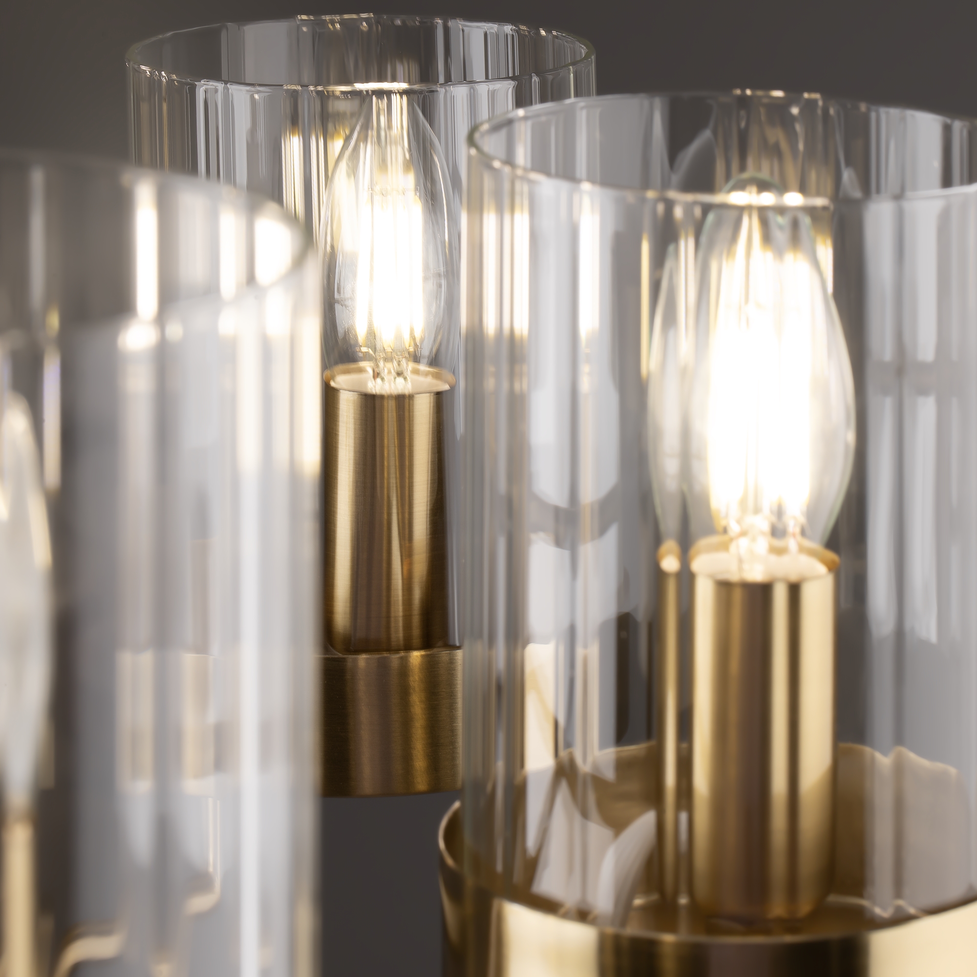 Арматура металл. Цвет арматуры латунь. Плафоны из рельефного стекла в форме цилиндра направлены вверх. Потолочные светильники подойдут для помещений с низкими потолками. Источник света лампа. Цоколь E14.