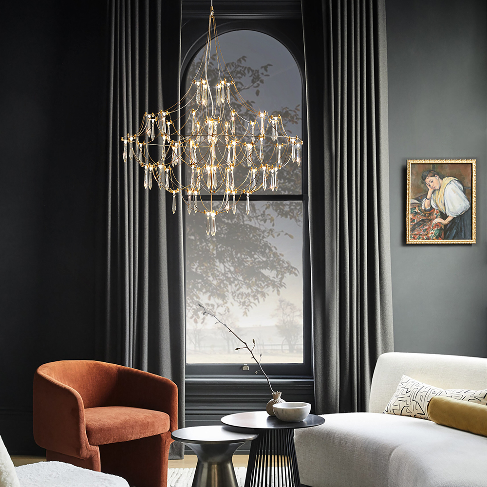 Арматура — хромированная нержавеющая сталь. В соединениях арматуры Led источник света и декоративные элементы из хрусталя в виде капелек. Цветовая температура 3000К.